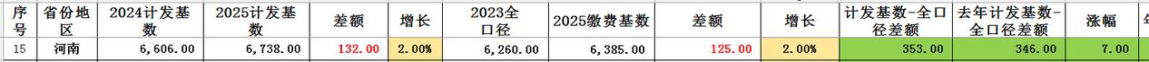 河南省2025年计发基数是6738吗? 有网友说河南省2025年的养老金计发基数是6738元,这个数虽然没有得到可靠的验证,但确实大差不差。 如果是6738元,增长132元,涨幅为2%与缴费基数的涨幅是一致的,符合今年绝大部分省份的套路。 计发基数与缴费基数二者之间的差额为353元,比去年的346元增加了7元。 无论怎么涨,河南省今年的第一,是稳坐的!