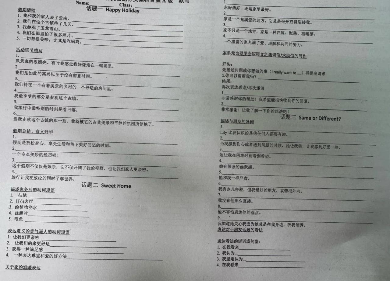 八上英语作文话题素材合集(1-4单元) 如何让孩子们的英语作文有血有肉? 相信老师们在日常教学中,都会让孩子们树立文章结构意识,开篇引入话题总起全文,正文表达作文题要求的主要内容(并且运用恰当的衔接词),结尾总结全文并升华。 那么如何引入,如何升华?如何有内容地去进行正文表达?我对八上前四个单元的对应话题梳理了这样一个素材整理合集,大部分内容选自于教材。并按照难度分为了AB版,读记并默写。 英语怎么复习 英语写作 八年级上册英语作文素材 八上英语作文怎么写