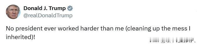 最新发声: “没有哪个总统比我更努力地收拾我继承的烂摊子!” ——特朗普说。 请注意,这是特朗普在美国时间晚上发的帖子,他白天可是呼呼的在大睡。 他的意思很明确了,不是他能力差,而是接过来的摊子太烂了,已经让他心力交瘁。 网友:拆东墙补西墙——忙个不停。