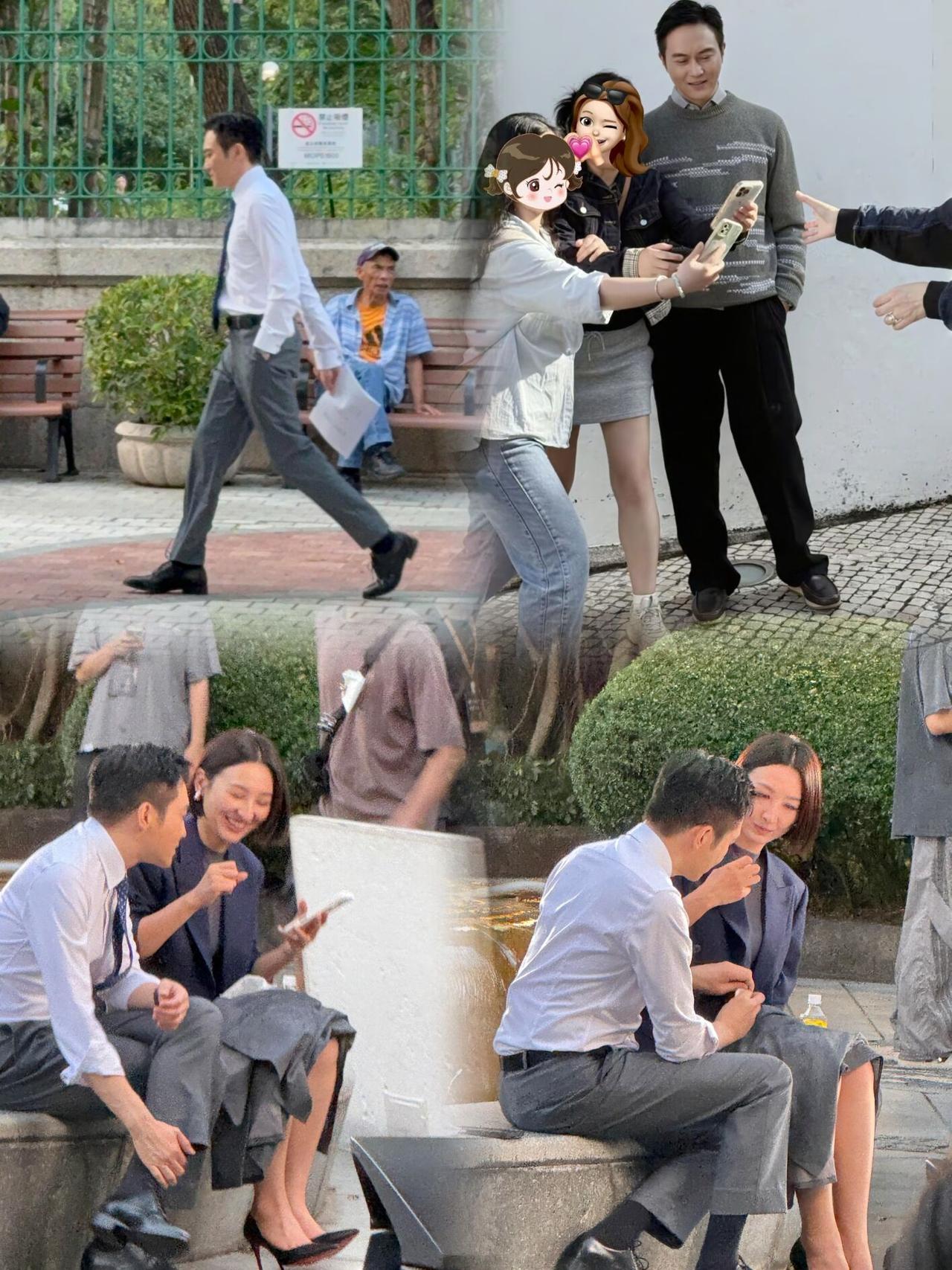 张智霖新剧搭档高海宁!很多网友在澳门遇见张智霖拍戏,他穿着白衬衣搭配西裤,近照又高又帅,这状态哪里能看出已经54岁了,真是帅了一辈子。高海宁也非常高挑,非常期待两人合作的《璀璨之城》,他们坐在公园里面,估计是在讨论剧本吧,张智霖这身材维持的太好了