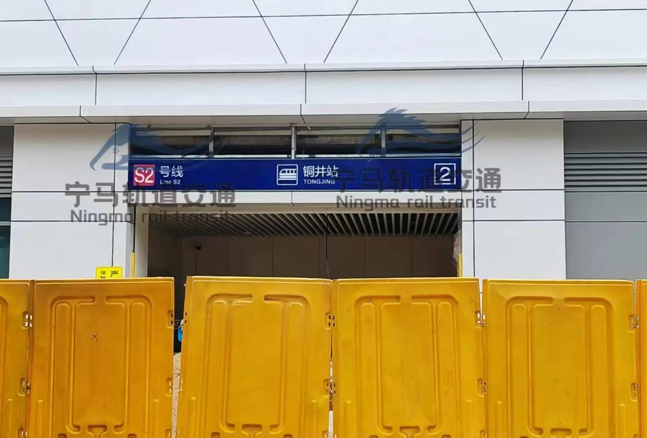 宁马城际南京段出入口导视继续上新! 近日,“宁马轨道建设记录”再次走访了宁马城际南京段沿线。行走途中,“宁马轨道建设记录”又碰了个巧,无意中首度瞥见:现场已有工人正在安装铜井站的出入口导向标识。正在安装导向标识的出入口在旺达路东侧,设于附属用房内,标识为“S2号线 2号出入口”,车站类型LOGO与S6号线(宁句城际)保持一致——“城际轨道交通”。 南京地铁 宁马城际 轨道交通 南京地铁s2