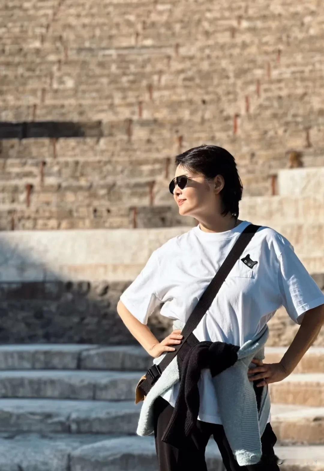 演员袁立夫妻俩现身国外旅游,夫妻俩坐在石台阶上,侧脸很有夫妻相。 53岁的她,瘦了之后颜值回春,肤色很白,头发乌黑浓密,五官精致,下颌线流畅,简单的穿搭却不失女神范。 看她现在的状态,感觉和小了十几岁的老公在一块,生活简单而满足,脸上幸福的表情是骗不了人的。 虽说她不再演戏了,但是她却在公益事业中找到了自己的价值,还有老公的默默支持和陪伴,这样的日子也惬意有意义!