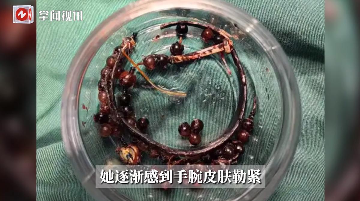 悲剧还是发生了!福建宁德,一33岁女子的银手镯,从结婚戴到现在整整10年,期间从未摘下,谁料,这只镯子竟长进了她的肉里!紧急就医后,医生的话让她后怕不已。网友:10年都不摘首饰也是个狠人啊。 林女士23岁结婚,这只银手镯是丈夫送的定情信物,上面还串着几颗小巧的珠子,她特别喜欢。从戴上的那天起,她就没摘过,不管是做家务、带孩子,还是上班干活,手镯始终在手腕上。 身边人也劝过她,说饰品戴久了要摘下来清洁保养。可林女士总说:“这是结婚的念想,摘了不吉利。”而且戴久了早就习惯了,手腕上突然空着还觉得不舒服。谁能想到,这份“珍视”,会给她带来这么大的痛苦。 去年冬天,林女士就觉得不对劲。天气一冷,衣服穿得厚,洗手时总感觉手镯勒得慌。她试着想把镯子摘下来,可戴了十年,镯子早就跟手腕“长”在了一起,稍微一用力就疼,她只好作罢。 她安慰自己:“可能是冬天穿得多,勒得慌正常,等开春就好了。”就这么拖了过去,没去医院检查。可她不知道,此时手镯已经开始慢慢压迫手腕皮肤,血液循环变得不畅,细菌也悄悄在缝隙里滋生。 今年开春后,南方天气潮湿。林女士的手腕开始发痒,靠近手镯的地方出现了一圈红印。她以为是皮肤过敏,从家里翻出抗过敏药膏,每天涂两次。涂完后确实能缓解痒意,她就更没放在心上了。 其实这时候,手镯下的皮肤已经开始破溃,只是被手镯挡住了,她看不到真实情况。药膏只能暂时压制表面的炎症,根本解决不了手镯压迫和细菌感染的根源问题。这一拖,就拖到了夏天,问题彻底爆发了。 进入七月,林女士的手腕突然开始刺痛,疼得她连筷子都握不住。有天洗澡时,她发现手镯缝隙里流出了黄色的脓液,手腕肿得像个发面馒头,手镯深深嵌在肿起来的肉里,连串珠都快看不见了。 她吓得赶紧喊来丈夫,两人试着用肥皂水润滑手腕,想把镯子摘下来。可刚一用力,林女士就疼得惨叫,手腕被勒得更红,脓液流得更多。夫妻俩这才慌了神,赶紧开车往医院赶。到了医院,医生一看就皱起了眉,说情况比想象中严重。 医生给林女士做了详细检查,最终诊断为“慢性炎症伴感染”。因为手镯长期压迫手腕,导致局部皮肤组织增生,加上细菌感染,才出现了红肿、流脓的症状。更危险的是,炎症已经开始侵蚀周围的神经,再拖延可能会影响手腕功能。 当天下午,林女士就被推进了手术室。医生用专业工具小心翼翼地剥离手镯周围的增生组织,因为手镯和肉粘得太紧,每剥离一下都要格外小心,生怕损伤神经。原本以为简单的取镯,足足花了一个多小时才完成。当医生把沾满脓血的手镯拿出来时,林女士的丈夫都不敢看。 林女士的遭遇,并不是个例。医生说,每年都会接诊不少类似的患者。有位大爷戴了二十年的戒指,手指变粗后戒指取不下来,最后手指缺血坏死,不得不截掉一节;还有位姑娘戴耳钉过敏,耳洞反复流脓,最后形成了瘢痕疙瘩,花了好几万才治好。 这些看似不起眼的小饰品,一旦长期佩戴不当,就可能变成“伤人利器”。尤其是戒指、手镯、耳钉这些贴身饰品,长时间不摘,很容易藏污纳垢,加上身体肿胀、组织增生,就会引发各种问题。 手术后,林女士的手腕慢慢恢复了功能,但留下了一圈明显的疤痕。想起这段经历,她就后悔不已。