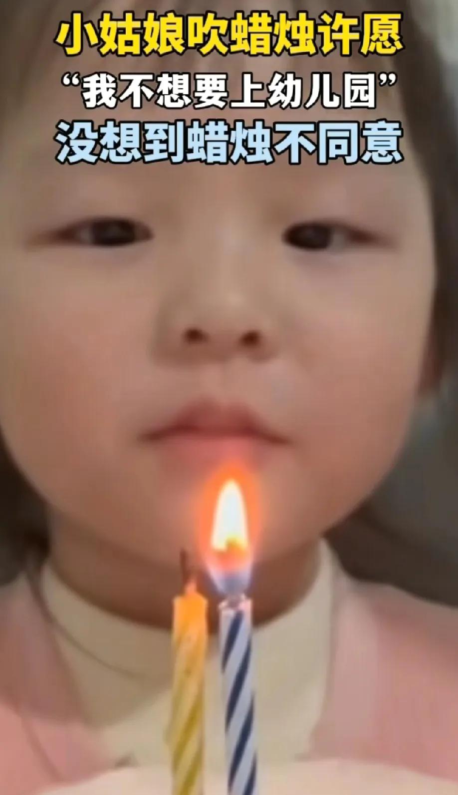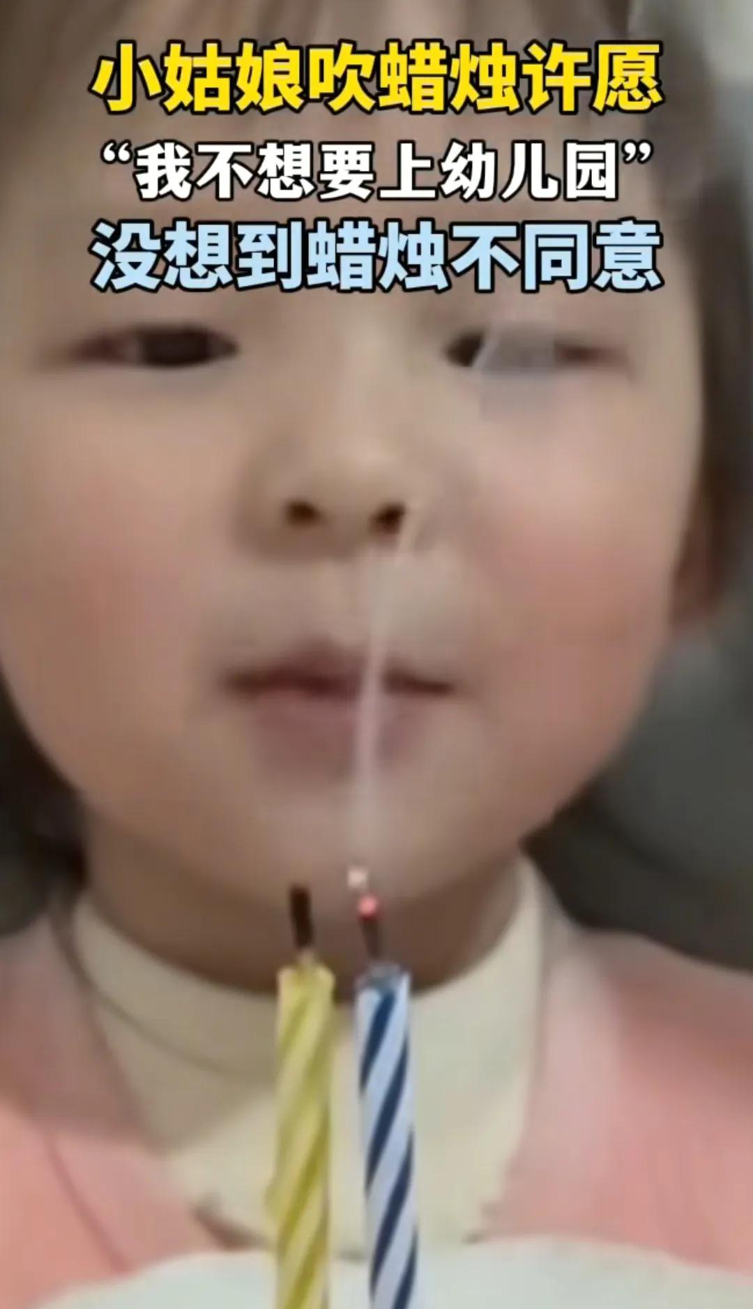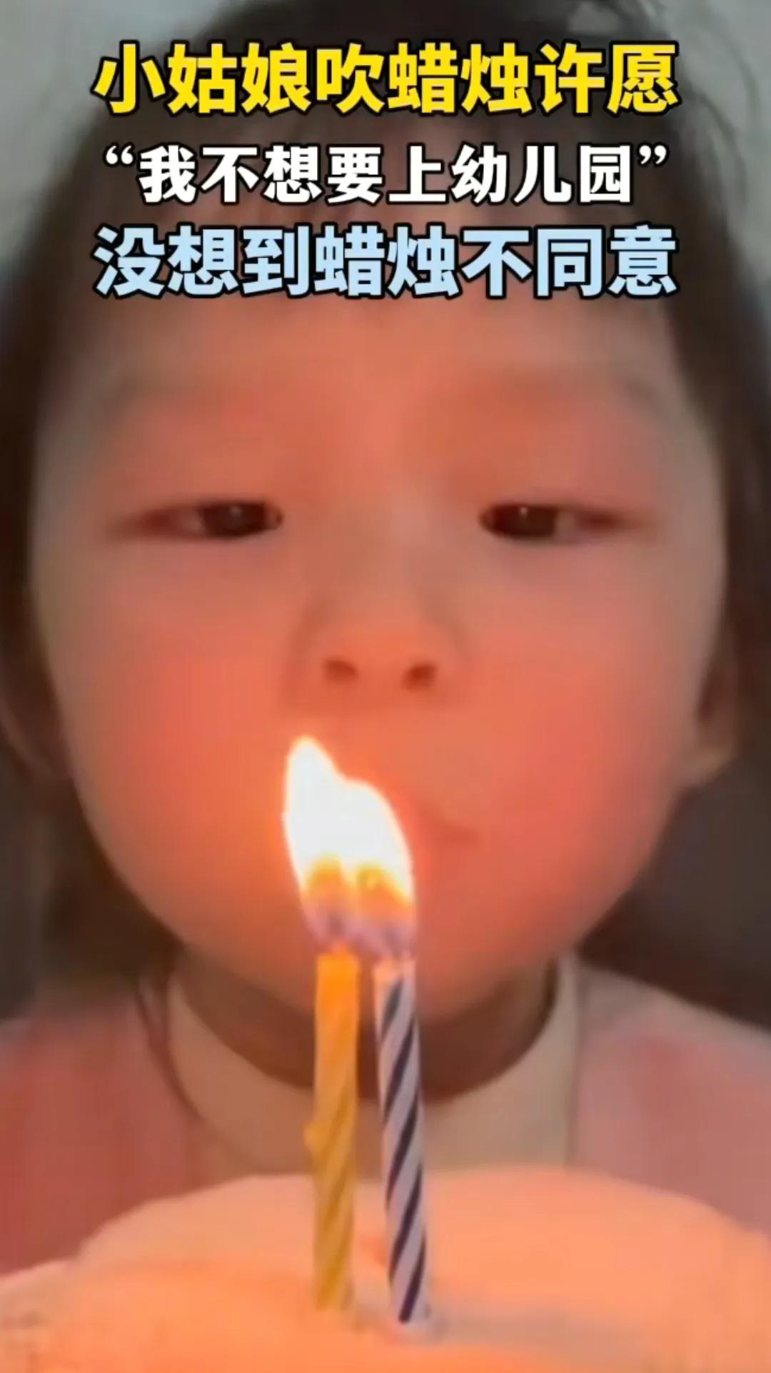 小女孩火上新华社! 生日许愿"我不想上幼儿园",本来一脸认真吹完蜡烛,刚要咧嘴笑,火苗居然"死灰复燃", 小丫头当场愣住, 皱着眉又猛吹一口, 结果蜡烛像跟她较劲似的, 又亮了!反复几次后, 那委屈的小表情, 简直要把人萌化了。 网友笑疯: 几十块的蛋糕扛不住这么大愿望啊! 不过话说回来, 这"复活蜡烛"看着好玩, 安全隐患可得注意, 毕竟是给孩子用的。 其实这波互动超真实, 哪个娃没为上幼儿园emo过? 你家娃小时候有没有过这种可爱的"愿望翻车"时刻?