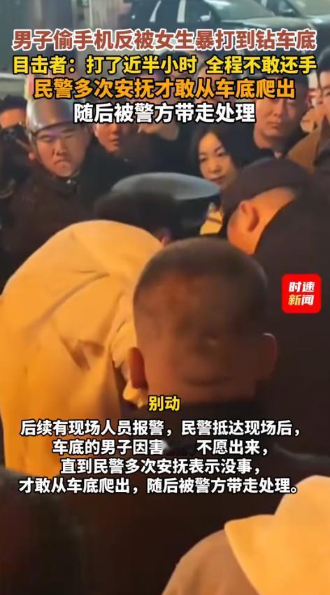 “踢到铁板了!”山西,一女生在商业街逛街时,突然发现手机被偷走,女生并没有求助他人,而是当场反击,甚至一度把小偷打到躲在车底不敢出来,后来还是路人报警,民警赶来后小偷才“获救”,网友:这是女侠啊! 11月7日,据时速新闻报道,太原这条商业街一如既往人声鼎沸。摩肩接踵的人群里,总有些不怀好意的目光在游走。 一名小偷看准了这拥挤的环境,觉得下手容易、脱身也方便,只要得手后往人堆里一扎,便能神不知鬼不觉。 他把目标锁定在一位看起来文静秀气的年轻姑娘身上。趁着擦肩而过的瞬间,他手指一动,姑娘口袋里的手机就被悄无声息地摸了出来。 得手后的小偷心里暗喜,脚步都轻快了几分,只当自己又完成了一次“完美作案”。可他万万没料到,这次不仅踢到了铁板,还是块能硌得他牙酸的“厚钢板”。 手机刚离开口袋,姑娘便瞬间察觉。换作旁人,或许会慌了神大喊“抓小偷”,或是急着四处张望寻找嫌疑人,但她没有。只见她猛地回头,眼神锐利如鹰,几乎是瞬间就锁定了刚从身边走开的那名男子。男子手中攥着的,正是她刚丢的手机。 这般反应速度,着实令人惊叹。 男子被这凌厉的眼神看得心头一紧,还没来得及把手机藏起来,姑娘已经一个箭步冲了上去。小偷的第一反应就是跑,只要混进人群,大概率就能脱身。可他刚一转身,胳膊就被一只手死死钳住。那力道沉稳有力,完全不像一个年轻姑娘该有的模样。 他拼命想挣脱,却发现对方的手像铁箍一般纹丝不动。 紧接着,没等他反应过来,迎面而来的拳头就落了下来。姑娘出手又快又准,招招直逼要害,专门朝着他的面部招呼。小偷被打得晕头转向,连连后退,根本没有还手之力。没几下,他的眼镜就被打飞,摔在地上碎成了几片。 周围逛街的人起初都看傻了,还以为是小情侣吵架动手。可越看越觉得不对劲:那名男子一路挨打、一路躲闪,嘴里还含糊不清地念叨着什么;而姑娘则是一脸怒气,步步紧逼,丝毫没有退让的意思。 小偷被逼得无路可退,眼看就要被堵在墙角,情急之下瞥见路边停着一辆SUV,车底盘不算低。他想都没想,一头就钻了进去。蜷缩在漆黑的车底,小偷的心怦怦直跳,只觉得这狭小的空间是此刻唯一的“避风港”。 姑娘追到车边,看着躲在底下不敢出来的小偷,气得又好笑又好气。 她弯下腰,对着车底大声喊道:“你给我出来!把手机还我!”可车底下的小偷打定了主意不吭声,任凭姑娘怎么喊,就是死活不出来。 这一幕让围观的人有些摸不着头脑,不知情的还以为姑娘在无理取闹。 有路人实在看不下去,壮着胆子上前询问情况。姑娘指着车底解释:“他偷了我的手机,被我抓住后就躲里面不出来了!”众人一听是抓小偷,态度立马变了。 大家纷纷围拢过来,有人拿出手机录像,有人劝姑娘别太冲动,也有人对着车底起哄,让小偷赶紧出来。 可小偷铁了心觉得车底最安全,外面的“女煞星”太吓人。最后,还是有好心人拨通了报警电话。没过多久,民警赶到了现场。 了解完事情的来龙去脉,民警也忍不住哭笑不得办过各式各样的案子,小偷被打得躲进车底,还得警察来“解救”的,还真是头一回遇上。 民警先安抚了姑娘的情绪,让她别太激动。随后,一名民警趴在地上,耐心地对着车底喊话:“出来吧,没事了,我们来了,她不会再打你了。” 喊了好几遍,车底才传来哆哆嗦嗦的回应。又过了一会儿,那名男子才满脸狼狈地从车底慢慢爬了出来。他身上沾满了灰尘,脸上还有几块明显的淤青,模样可怜兮兮的。 男子一出来就被民警控制住,身上也当场搜出了姑娘被偷的手机。 这件事被传到网上后,很快就火了起来,网友们的评论区里一片叫好声。有人说:“这姑娘肯定是练家子吧?简直是当代女侠,干得太漂亮了!”也有人调侃小偷:“本来想偷个手机潇洒一下,结果先挨了一顿痛击,职业生涯直接遭遇重大滑铁卢。” 多数网友都觉得,虽然动手打人并不妥当,但这事儿看着就是解气。被偷东西后的那种憋屈和愤怒,很多人都感同身受,姑娘这一顿操作,简直是替所有受害者出了口恶气。 当然,评论区里也不乏理性的声音。有网友提醒:“佩服归佩服,但姑娘家家的这么做,实在太危险了。 万一小偷身上带了刀,或者还有同伙在场,后果真的不堪设想。”这话确实说到了点子上。我们为姑娘的勇敢和果断喝彩,但绝不能把这种行为当成可以效仿的范本。 面对小偷这类不法分子,最安全、最正确的做法,永远是先保证自身安全。 一声怒喝、一次援手,就能让小偷成为过街老鼠,无处遁形。 唯有这样,正义才不会孤立无援,不法分子才不敢肆意妄为。而我们走在街上时,心里才能更踏实,我们的社会也才能真正变得更安全、更温暖。 信源:时速新闻2025-11-7——男子偷手机反被女生暴打到钻车底,目击者:打了近半小时 全程不敢还手,民警多次安抚才敢从车底爬出,随后被警方带走处理