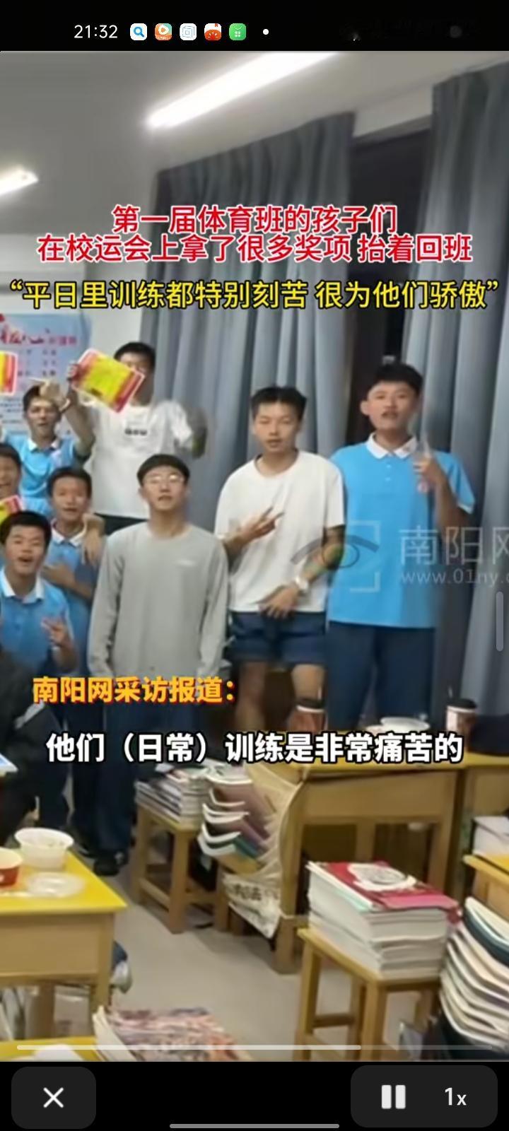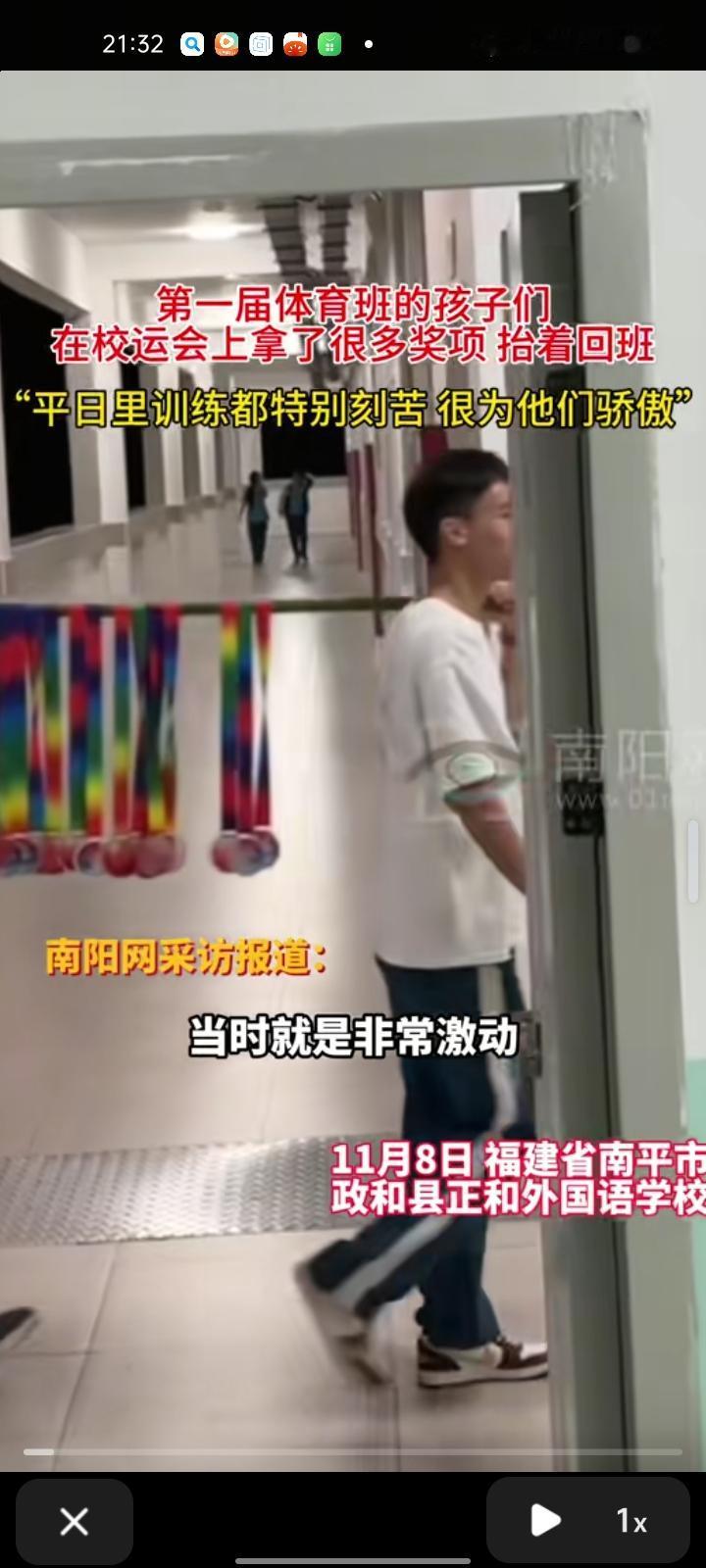 11月8日,南平市政和县。第一届体育班的孩子们在校运会上拿了很多奖牌、奖状,抬着回教室。可以看出,他们获得的荣誉都离不开刻苦的训练,运动会是他们的高光时刻,老师也他们骄傲