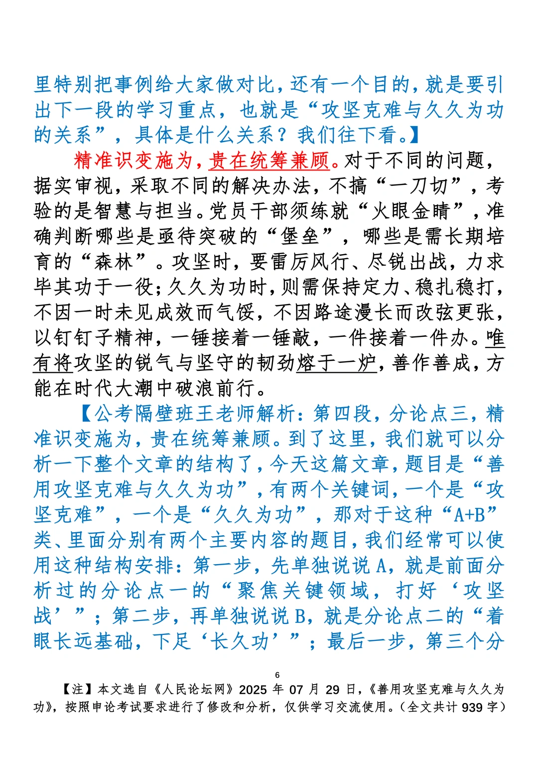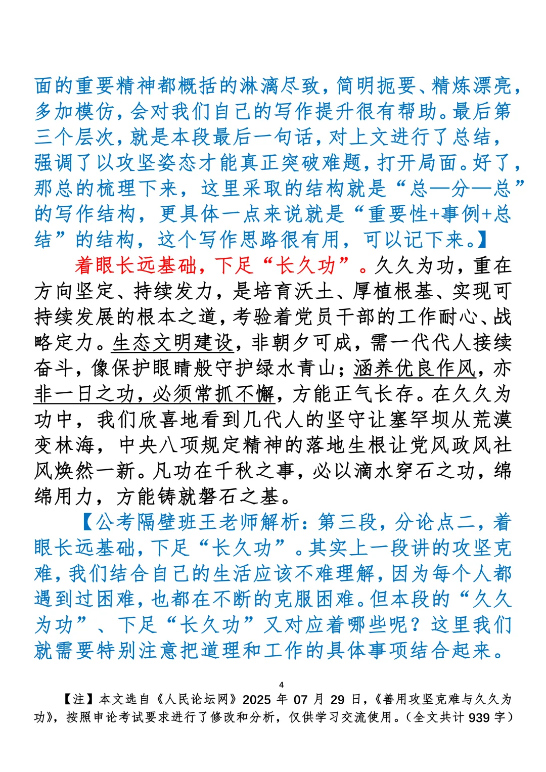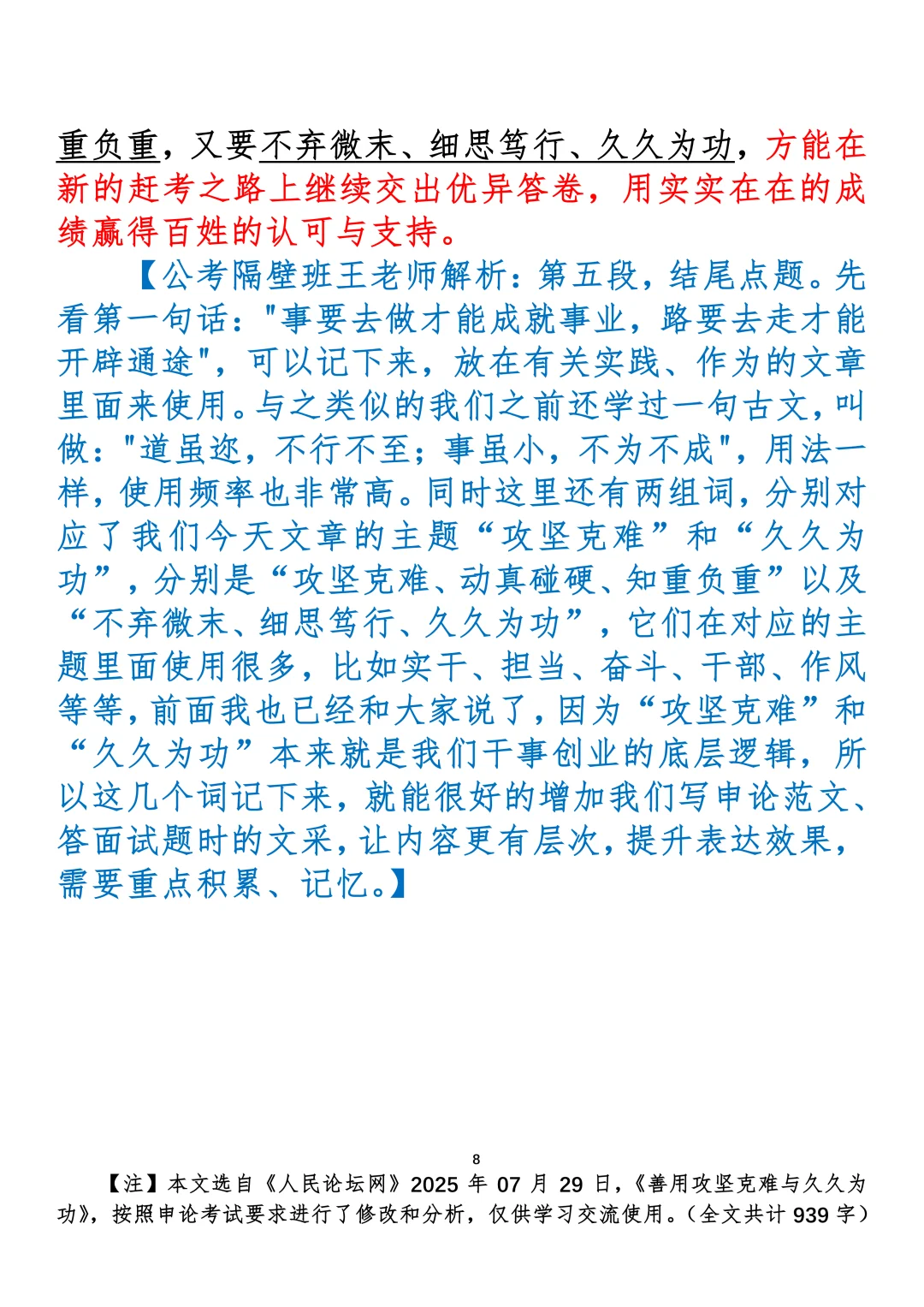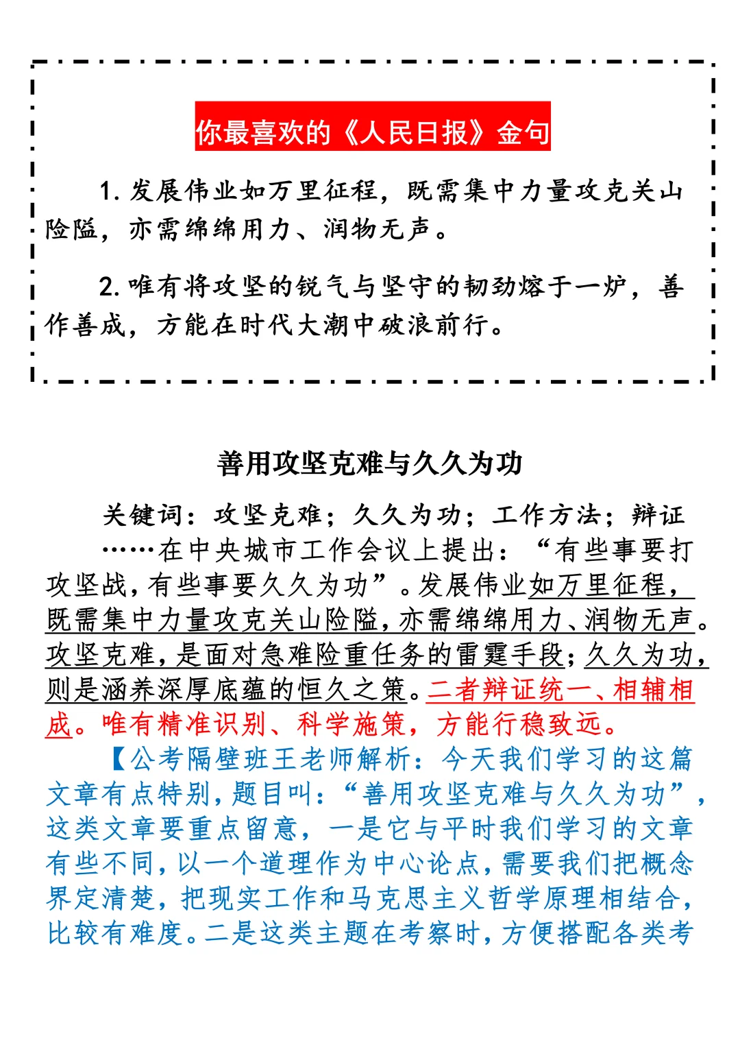 如何抄写:每日抄写文章发在“公考隔壁班王老师”账号,红色字是重点句和结构句,黑色字是正文,蓝色字是解析,大家抄写时不必抄蓝色字。建议先通读全文,做到心中有数再开始抄写,效果会更好。关于文章:抄写文章来源于人民日报,但每篇文章我都根据申论考试要求进行了修改:一是重写或修改开头、结尾;二是统一段首句句式结构;三是调整段落字数,使文章结构更均衡;四是简化复杂长难句,使之更具可模仿性。每篇文章无论修改多少,都是基于申论考试要求,毫无对人民日报文章品评之意。(此处致敬人民日报)