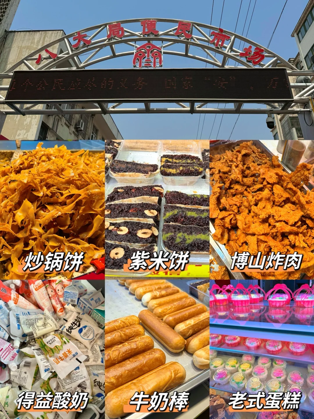 ✅小吃:博山炸肉 麻辣味炒锅饼 得益酸奶 紫米饼 肥肠包