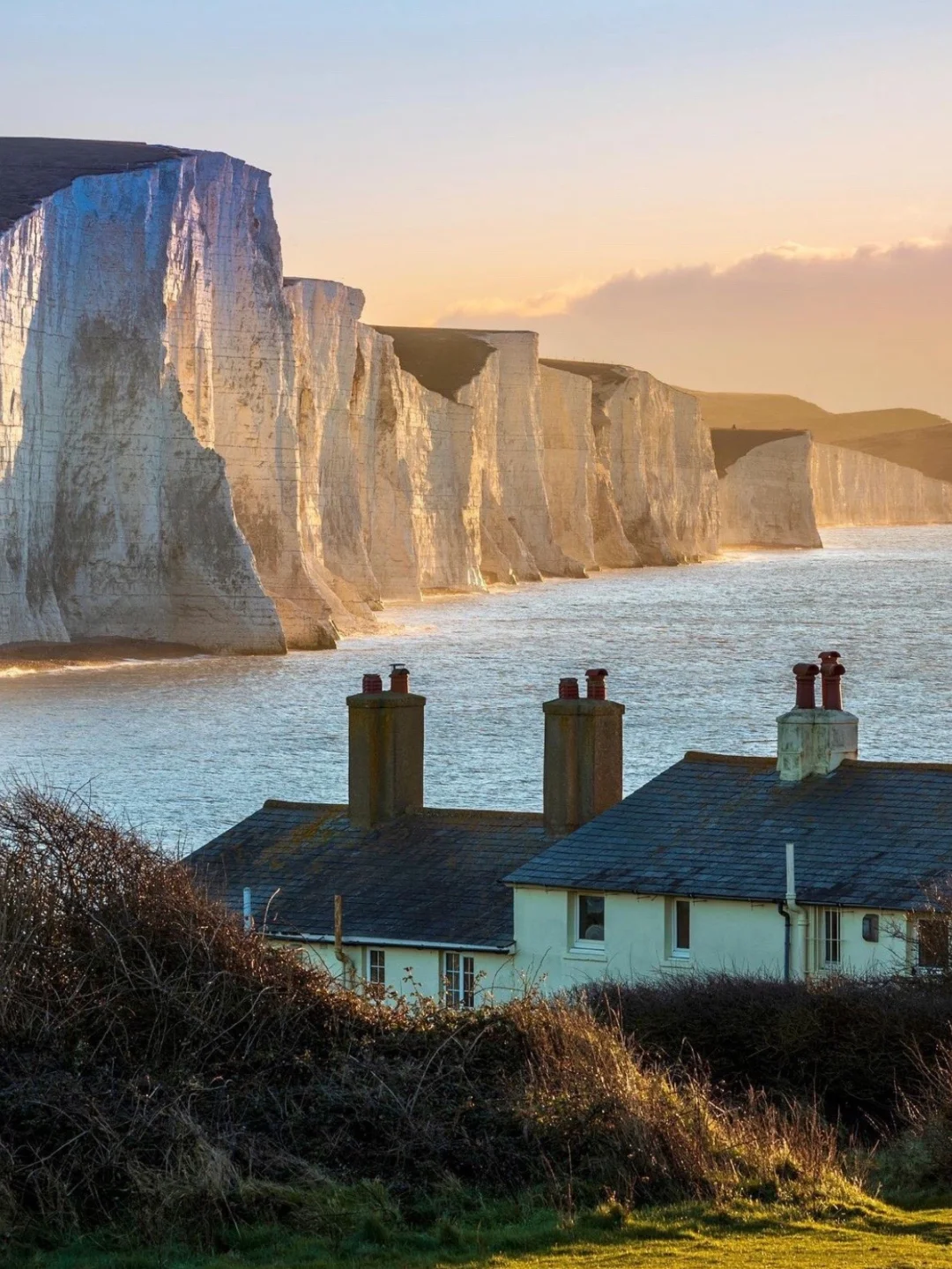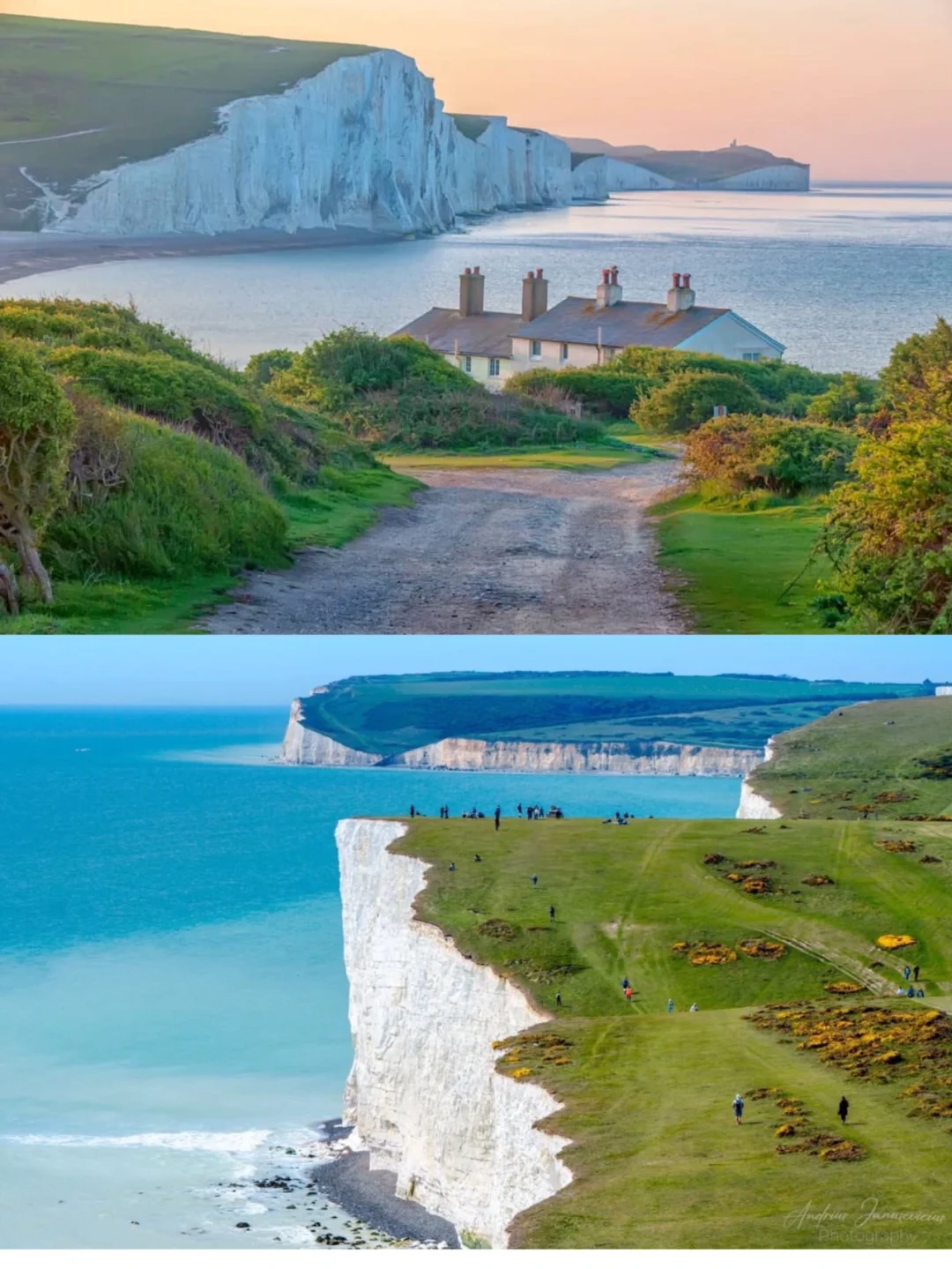 七姐妹悬崖坐落于英国Seven Sisters Country Park,有七座主要的白垩断崖相连,紧临英吉利海峡,像是七个姐妹相依看海,故名为“七姐妹”。