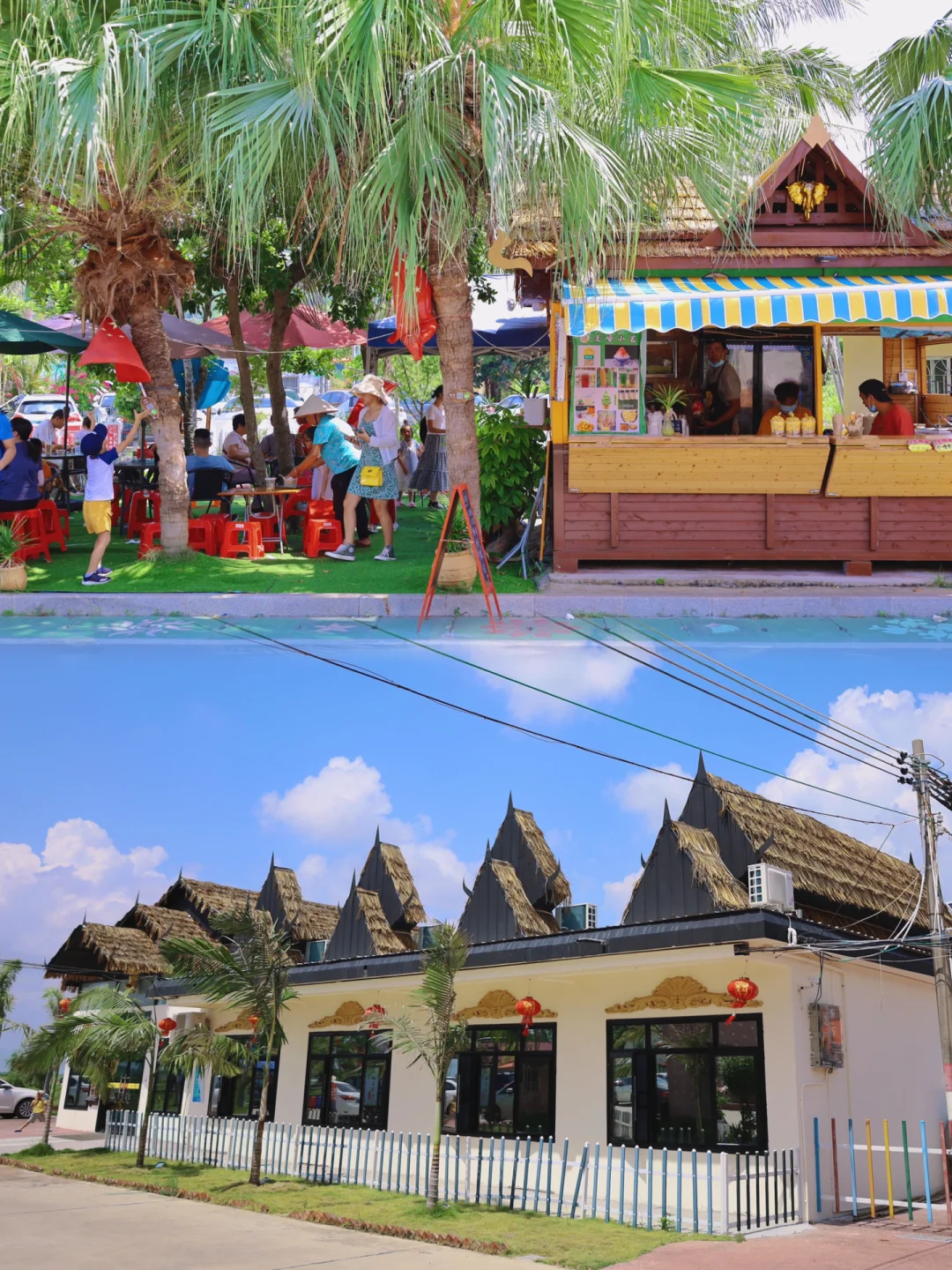 这里整体是东南亚建筑风格,来到这里真的有种来到了东南亚的感觉。这里还有东南亚特色的斑斓美食:斑斓千层糕、斑斓汁、斑斓卷……