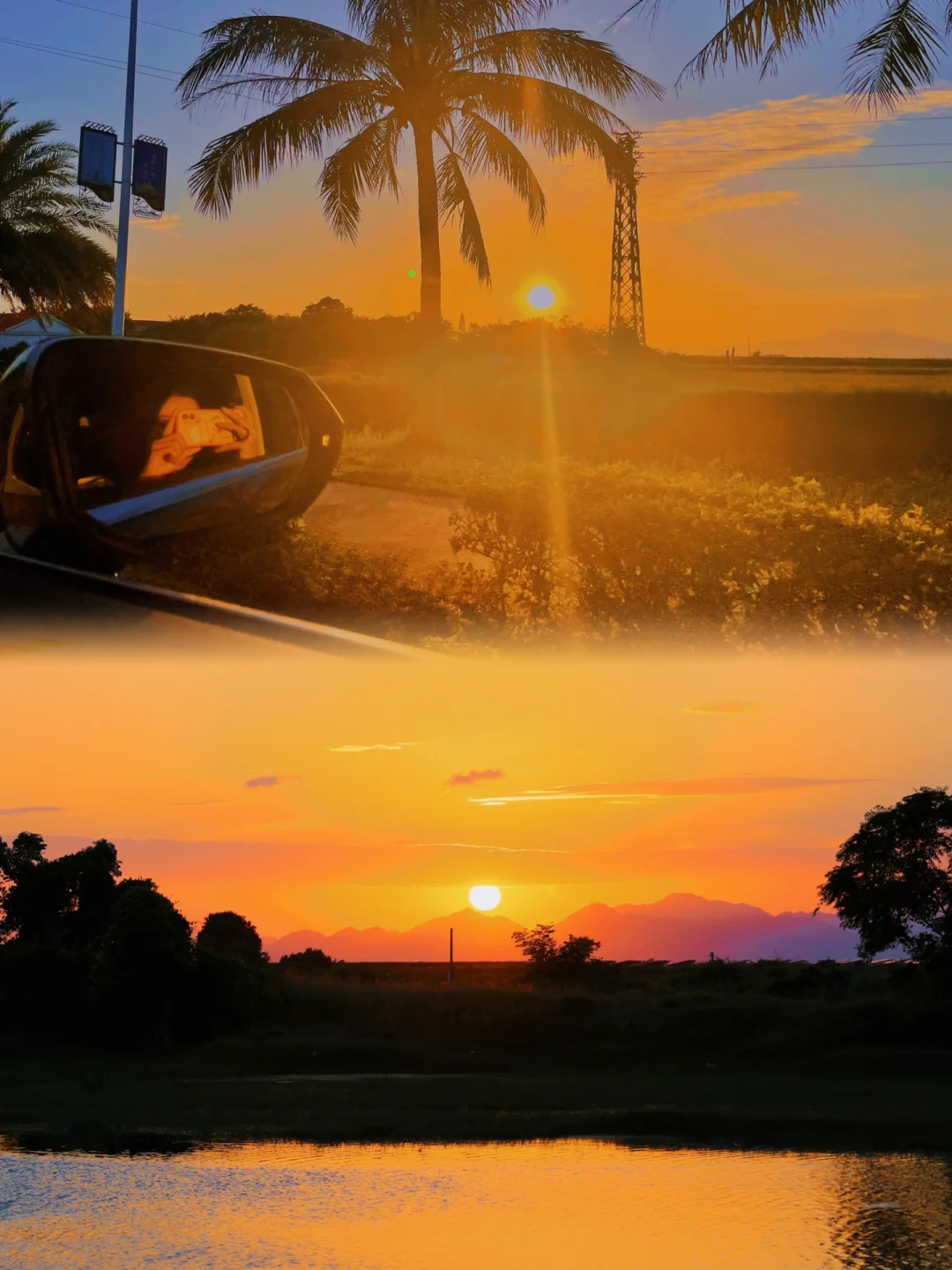 海宴华侨农场里的「观鸟台」和「青山咀」都是观看日落的最佳地点,我是因为来不及前往目的地,所以只是在前往「青山咀」的路上的田野,停下来就拍日落了