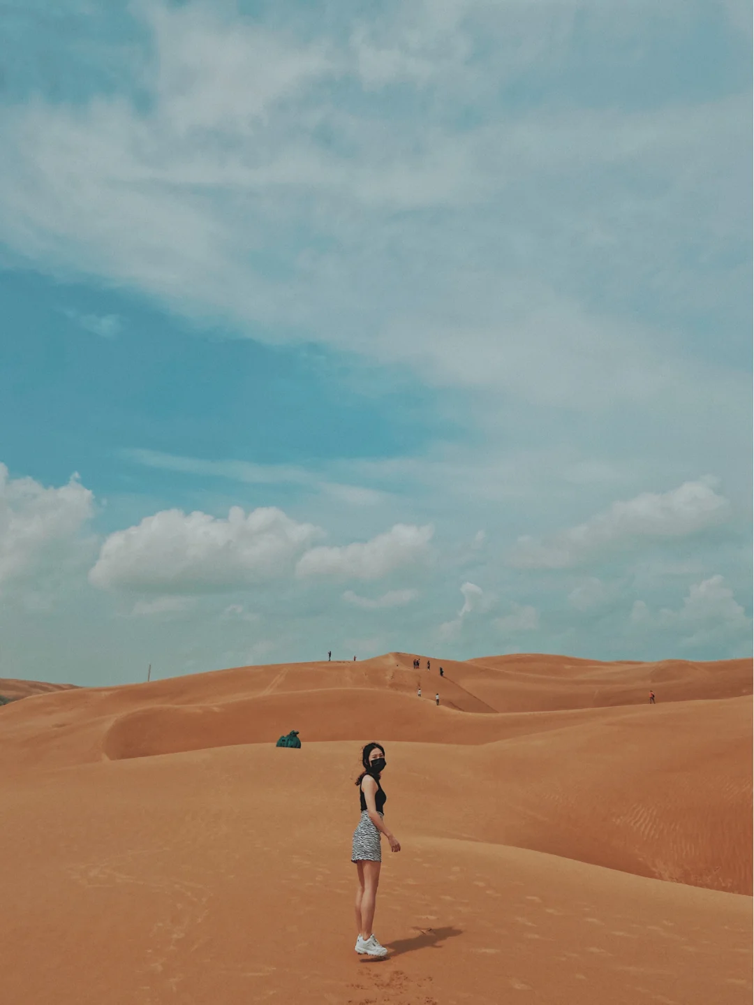 - 🧡内蒙古详细的行程,请看上一篇笔记🧡 🚗自驾:呼和浩特-响沙湾2.5 小时 . ——————🏜️关于响沙湾🏜️—————— 🅿️自驾的朋友可以直接停在景区内,停车费一次性10元 . 🌟响沙湾分为 4 个岛: 仙沙岛:游玩类,有很多游玩设施&表演 悦沙岛:游玩类,有个大泳池 莲沙岛:度假酒店,落地玻璃餐厅、网红岛 福沙岛:度假酒店 . 如果只是为了拍照📷,我觉得以上4个岛都可以不去了,直接坐缆车🚠去响沙湾就好了,已经可以满足所有了 ——————🏜️仙沙岛🏜️—————— 因为我们都比较玩刺激的,所以选择了仙沙岛。 . 💰门票:让宾馆老板帮我们买票,原价380元,然后我们330元就可了。包括缆车、游玩项目都全包了。 . 🚠缆车到达响沙湾后,要去仙沙岛的话记得要坐冲浪船车🚢前往仙沙岛,走路走不过去的,巨远‼️ . 🎢娱乐设施:骑骆驼🐫,过山车🎢、激情摩托🏍️、高尔夫⛳️、滑索、表演、还有适合小朋友玩的(老实说一句,我觉得这些机动游戏一点都不刺激,有点失望的[失望R]) . 🥤吃喝:里面有食街,但价格会偏贵一点点,建议可以提前准备饮料哦 . 🏜️沙漠游玩完毕之后,建议选择滑沙下去,20元/人,还是挺好玩挺不错的体验 . 🏎滑沙下来有卡丁车可以玩,60元/人/辆,100元/2人/辆,我个人觉得吧,好玩是好玩就是太短,一下子就没了,就觉得不太值 . ——————🏨关于住宿🏨—————— 1⃣️【莲沙岛】或【福沙岛】💰1500+元/间在响沙湾景区里的,出门就是大沙漠 2⃣️【一粒沙度假村】💰300+元/间,出门就是停车场🅿️,走两步就到缆车索道门口🚠,对于出发前往响沙湾很方便 3⃣️【响沙特色住宿】💰150+元/间,就在响沙湾下面,滑沙下去就能直接走过去了。房间从窗户看去,就是一整片沙漠了,景色也很赞,但住宿环境就一般咯,不过楼下就有餐厅,吃饭还是很方便,而且价格实在 . ——————🌟小提示🌟————— 1⃣️关于拍照📷:红色裙子和沙漠挺搭的,很仙的感觉;但个人觉得太多人穿红色了,所以选择了黑色,可以拍些酷酷类型的[害羞R] 2⃣️做好防晒防尘☀️:戴墨镜、戴口罩、抹好防晒、戴好帽子🧢、撑好伞🌂,不然第二天肯定晒掉皮 3⃣️昼夜温差大🌡️:一定要带件薄外套🧥 4⃣️进景区会有卖鞋套的,但我觉得如果风不是很大的话不太需要,反正我们鞋子没有进很多沙
