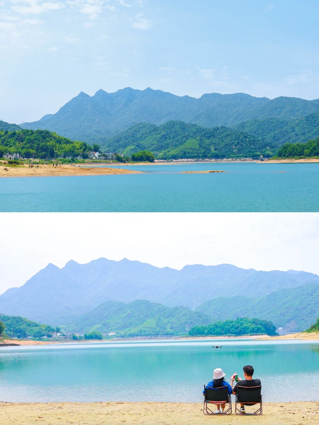 很多网友称它是 广州版“小泸沽湖” 广州版“小九寨沟” 虽然我个人觉得形容有点过了 毕竟与真实版泸沽湖、九寨沟相比 当然还是有一段距离的 . 🌲 但小杉村也是真的很美 而且游客还很少 一进村口,映入眼帘的是 清澈的蓝绿色水流 环绕四周高山群峰 景区还弄了栈道和一些观景台 (随着光线不同,水质颜色也会不同) 👫 拿张椅子坐在湖边 静静享受这颗“绿宝石”带来的静谧 闲时捡起湖边的小石子 和家人玩起儿时的小游戏——打水漂 今日又是休闲、自在、快乐的一天 . ⚠️|不能露营了‼️ 有挺多小伙伴是为了露营而过来小杉村的 但我在驶入小杉村口的时候 工作人员已经明说这里不允许露营了❌ 虽然我在现场还是看到挺多人在这里露营野餐的⛺️ 但还是不建议大家过来露营哦 避免辛辛苦苦搭好天幕后,就遭到工作人员的驱赶哦🙈 (所以我们也只是搬了两张椅子出来拍拍照而已📷) . 🏞|周边景点 不建议大家特意只过来小杉村玩耍哈,因为这里除了景色好看之外,其实没有什么娱乐项目了,而且现在连露营也禁止了🈲️。 但可以连同在小杉村周边景区一起游玩,以下这些都是自驾30分钟就达到🚗,而且都是免费的景点🆓: 「莲麻村」:一个休闲的美丽乡村,还有酒庄,可以看到他们制作的过程,喜欢喝酒的宝别错过了 「桂峰村」:流溪河的源头就在这里,可以溯溪玩水露营,还有满山的李子 「三角山」:广东第七高峰,可以俯看到整个小杉村的水库地貌 . 📍|广东省广州市从化区小杉村 🚗|自驾1.5小时 🎫|门票免费 🅿️|停车免费 .