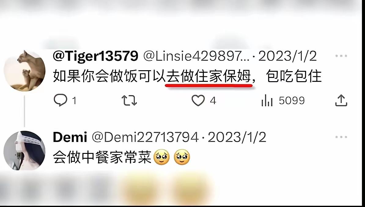 在国内羞辱男人你是心高气傲,一朝出国洗盘子被骚扰你是生死难料。 这位仙女觉得中国男人都配不上自己傲人的容颜,于是跟随公知润去了美国。结果发现,这里和公知嘴里遍地黄金的地方不一样啊! 自己没几天房租都快交不起了,只能在中餐厅每天刷十几个小时盘子,以前是十指不沾阳春水,现在满手老茧泡的发白。结果人家的逻辑是:中国老板压榨员工。 她找到润人前辈求助,结果又受到骚扰,最后只能去做了保姆。好好干吧姑娘,你的认知配得上你受的这些。 润到国外 润人赴美梦碎