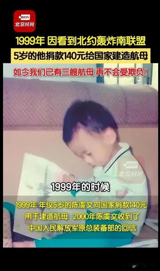 这封信在2025年突然火起来,其实是1999年发生的事,解放军总装备部退给一个广西小孩140块钱,信里没有批评这个孩子,还祝他新春快乐、学习进步,这种事平时很少见,一般捐款都会收下,他们却把钱退了回来,并且附上一张贺卡,现在大家觉得,这不是公事公办的做法,更像大人对小孩表达的一点温柔。 陈虞文这个孩子,他的父亲是一名退伍军人,他从小就听了很多军队里的故事,军队退还捐款不是不领情,而是按规定不能接受个人捐款,但他们没有冷淡地回绝对方,反而加上祝福的话语,这说明当时部队也懂得,孩子的热情需要保护,即便钱不能收下,心意也要留住,后来政策逐渐调整为鼓励精神支持,不提倡孩子出钱,这种做法很明智,既遵守规定,又不会让人伤心。 陈虞文没有因为退钱就放弃,后来他读了许多军事书籍,还专门去看了刘永福和冯子材的旧居,上大学时选择了法学专业,工作后去了北京,一直关注海军的发展动向,辽宁舰在2012年服役,山东舰在2019年下水,这些事情他都持续留意着,2023年他上央视节目时,又提到了当年写的那封信,他说看到国产航母正式入列,感觉小时候的梦想已经实现了。 从一九九九年到二零二五年,时间跨度很长,一个孩子捐出一百四十块钱,这笔钱国家没有收走,过了几十年,孩子的愿望真的实现了,这中间没有人特意安排,只是顺着历史往前走,很多人看到这件事后,觉得重点不在钱的多少,而是那份简单的心愿得到了尊重,最后还真的实现了,这种巧合虽然少见,却让人心里感动。