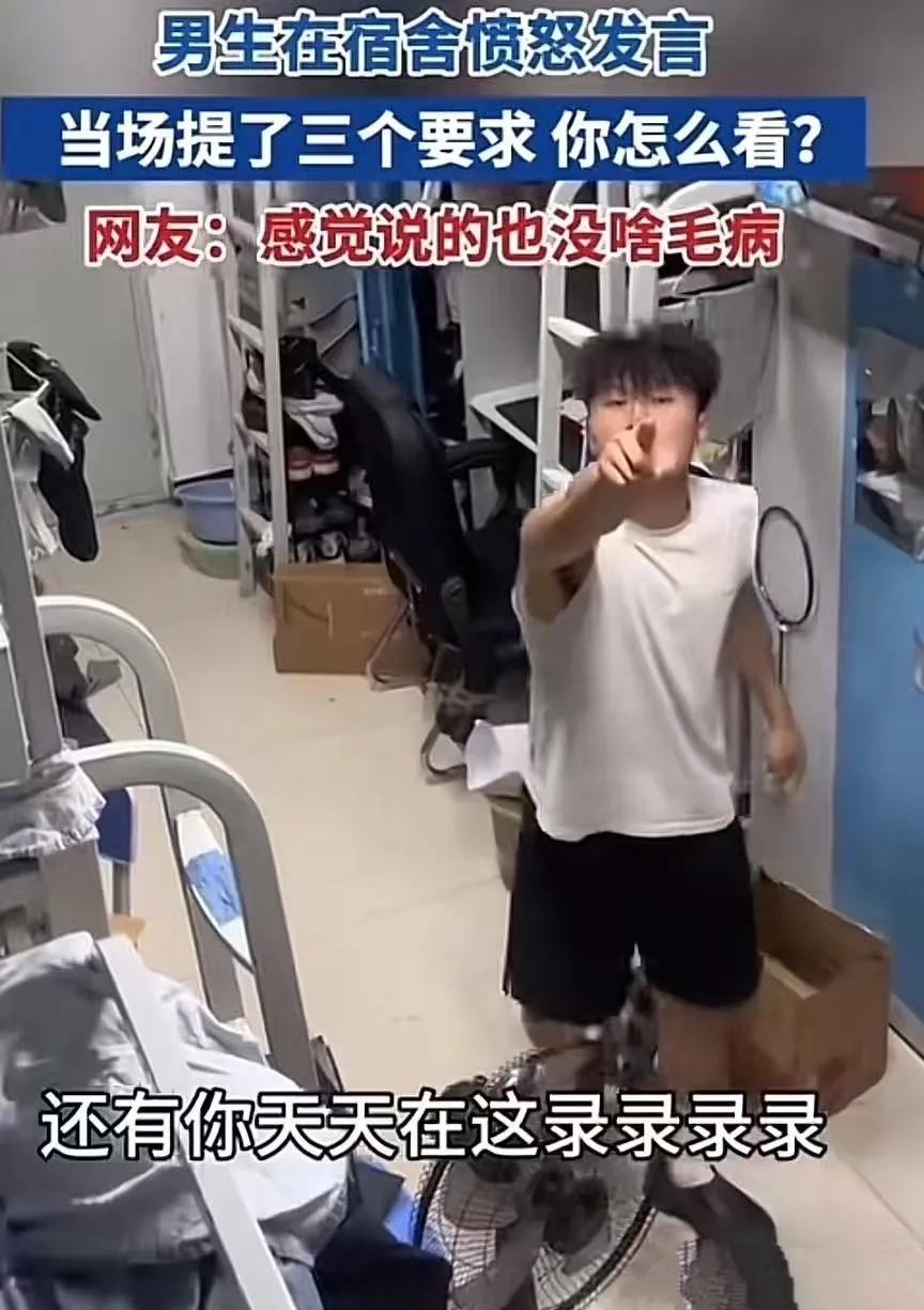 这宿舍互撕也太抓马了吧! 我刷到视频时直接看傻了!男生在宿舍红着脸发飙,三条要求喊得震天响:不准在宿舍抽烟、11点半断电后彻底静音、拿他东西必须打招呼,还揪着一提纸两天剩一卷的事较真。 拍视频的室友当场不服,转头就发网上吐槽,说宿舍又不是他一个人的,抽烟、熬夜打游戏凭啥被管,纸巾这点小事至于斤斤计较。 网友直接吵翻了天!有人骂男生语气像命令,太嚣张;有人却站他,说集体生活就该守规矩;还有人说双方都该互相体谅。 集体生活哪能只顾自己?要么好好商量,要么互相迁就,硬刚到底谁也落不着好,这事儿到底该谁让一步?同宿舍的人 宿舍同学关系 宿舍讨厌行为 宿舍冲突