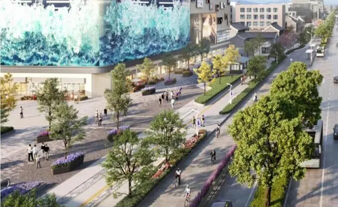 在景观设计上,将通过连续绿化、休憩空间引导人流,激活沿街商业氛围,同时对泉城路沿街建筑进行分类设计,重点优化1−3层立面。在路面材质上,继续沿用标志性的大理石路面,从根本上提升行车舒适度与行人安全性;在细节优化上,计划将泉城路北侧现有公交站改造为港湾式停靠站,减少公交车停靠对主线车流的干扰。
