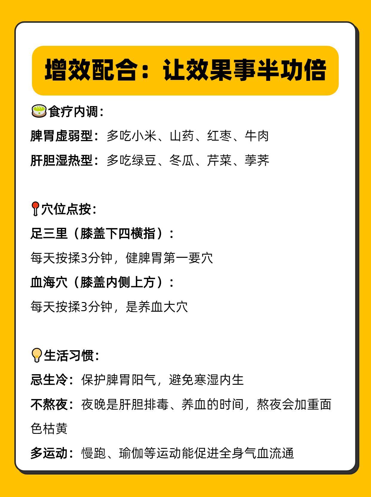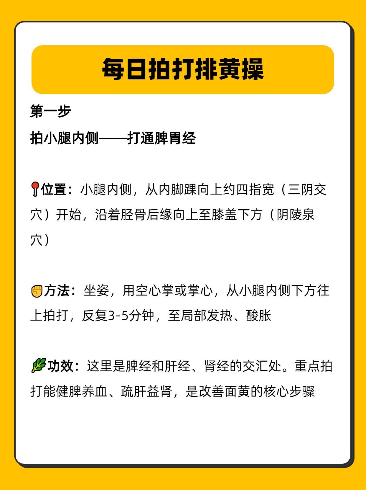 皮肤发黄,就要多拍拍自己!《黄帝内经》讲:"黄为脾色",皮肤萎黄多因:✅脾经淤