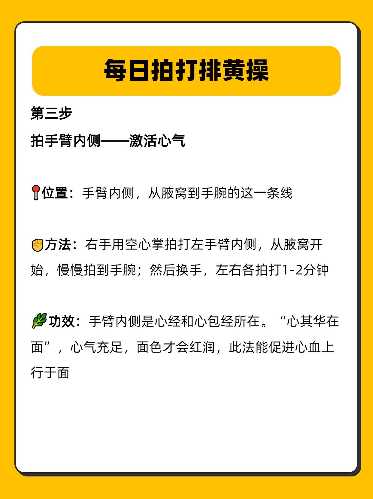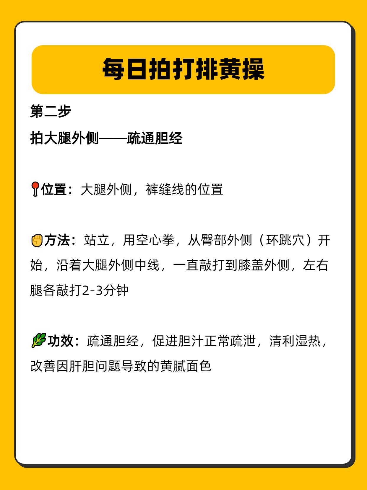 我们可以通过拍打特定经络和穴位,健运脾胃、化生气血,同时疏肝利胆,解决因脾胃堵塞导致肝气不舒带来的面色黄染