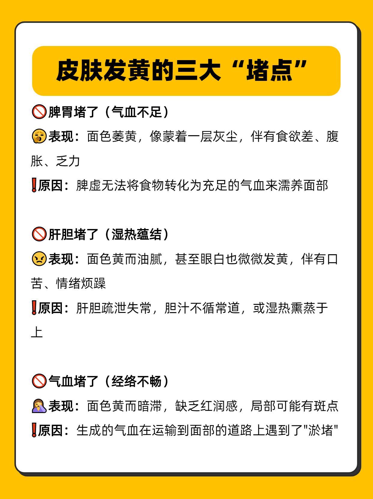 脾胃是气血生化之源,一旦气血生成不足或运输不畅,无法上荣于面,皮肤就会呈现出不健康的黄色
