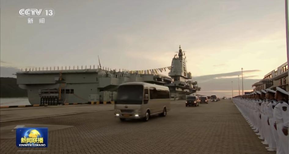 福建舰:我不要面子吗,一辆中巴遮住我一半