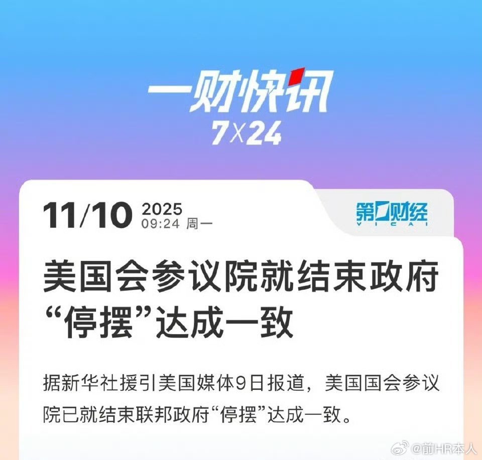美国会参议院就结束政府"停摆"达成一致,看来破纪录的美国政府停摆要结束了。
