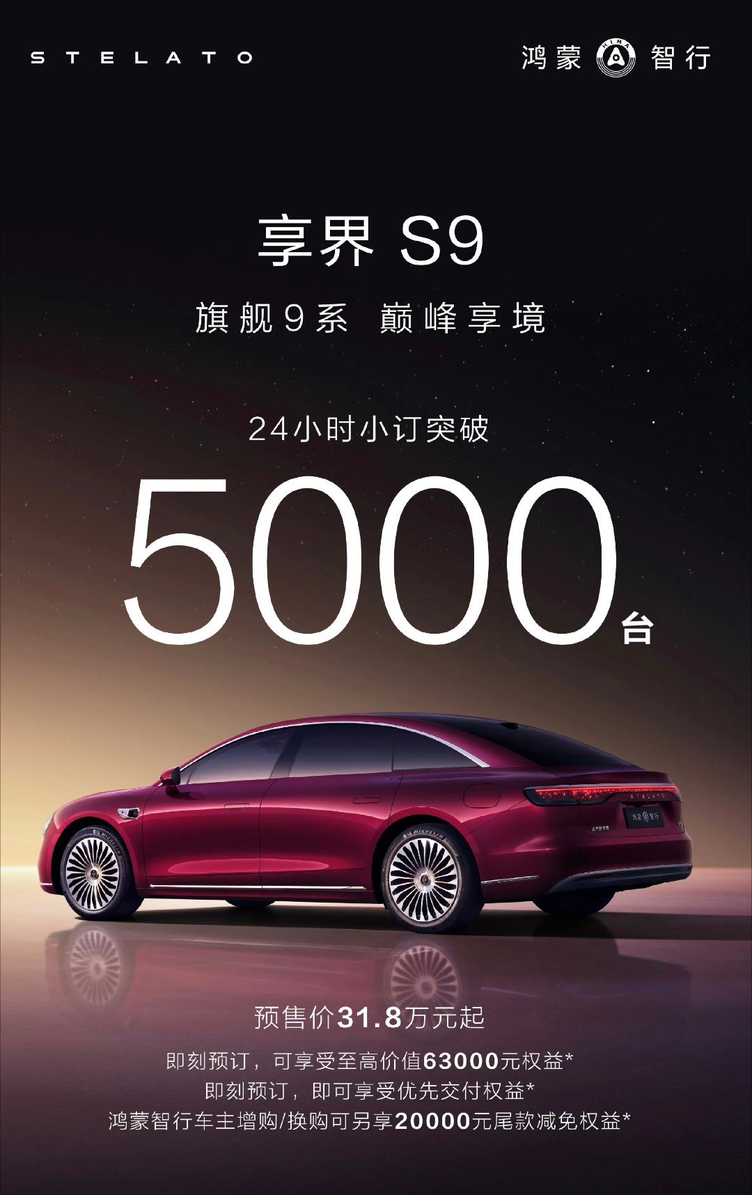 享界S9新款,24小时5000台小定,符合预期