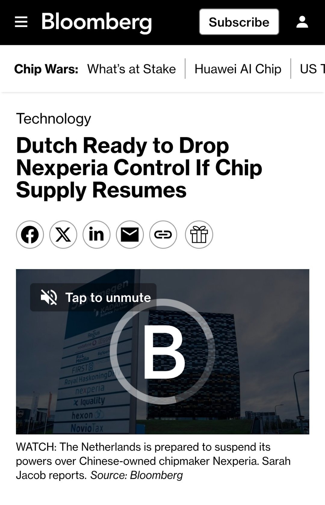 外媒报道:荷兰准备在中国放开安世半导体供应以后,放弃控制权