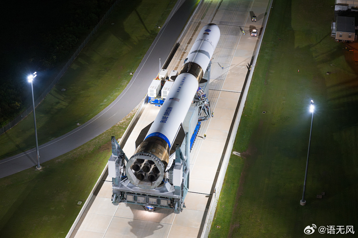 蓝色起源第二发新格伦火箭已经在发射台竖起,目前瞄准发射时间为北京时间11月10日03:51分。火箭发射