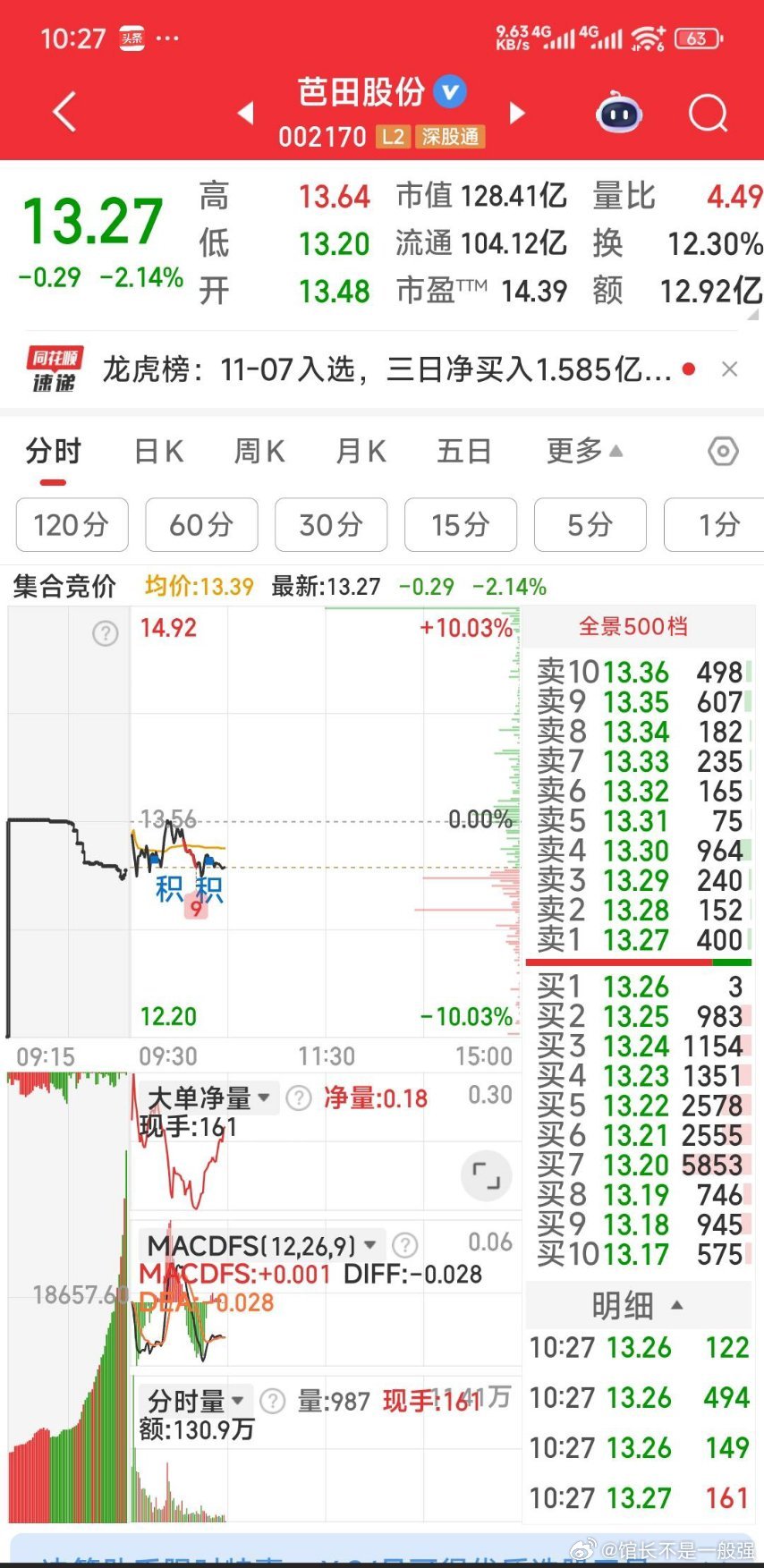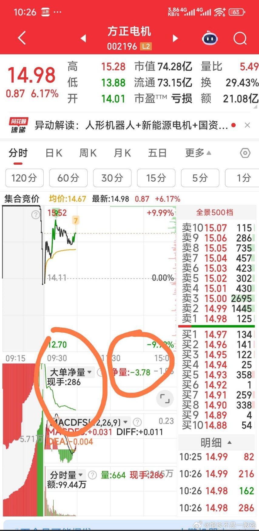 方正电机吃肉6.7%见好就收,因主力大单在出货,再补仓到业绩好的磷化工芭田股份。