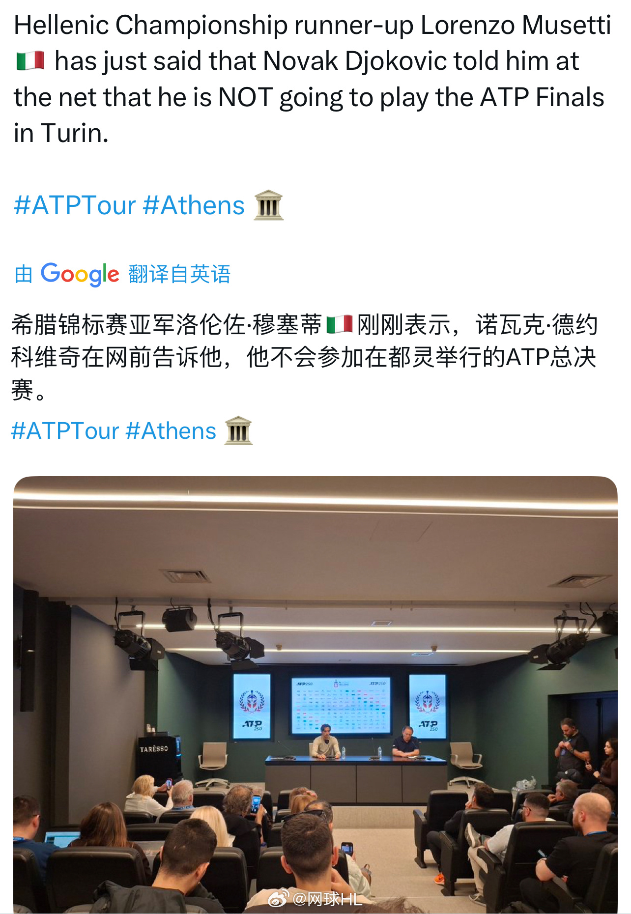 穆塞蒂:德约在网前告诉我不会参加年终总决赛