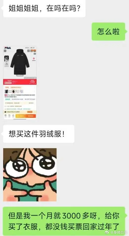 月薪3.5k,但是给妹妹买了1.5k的羽绒服