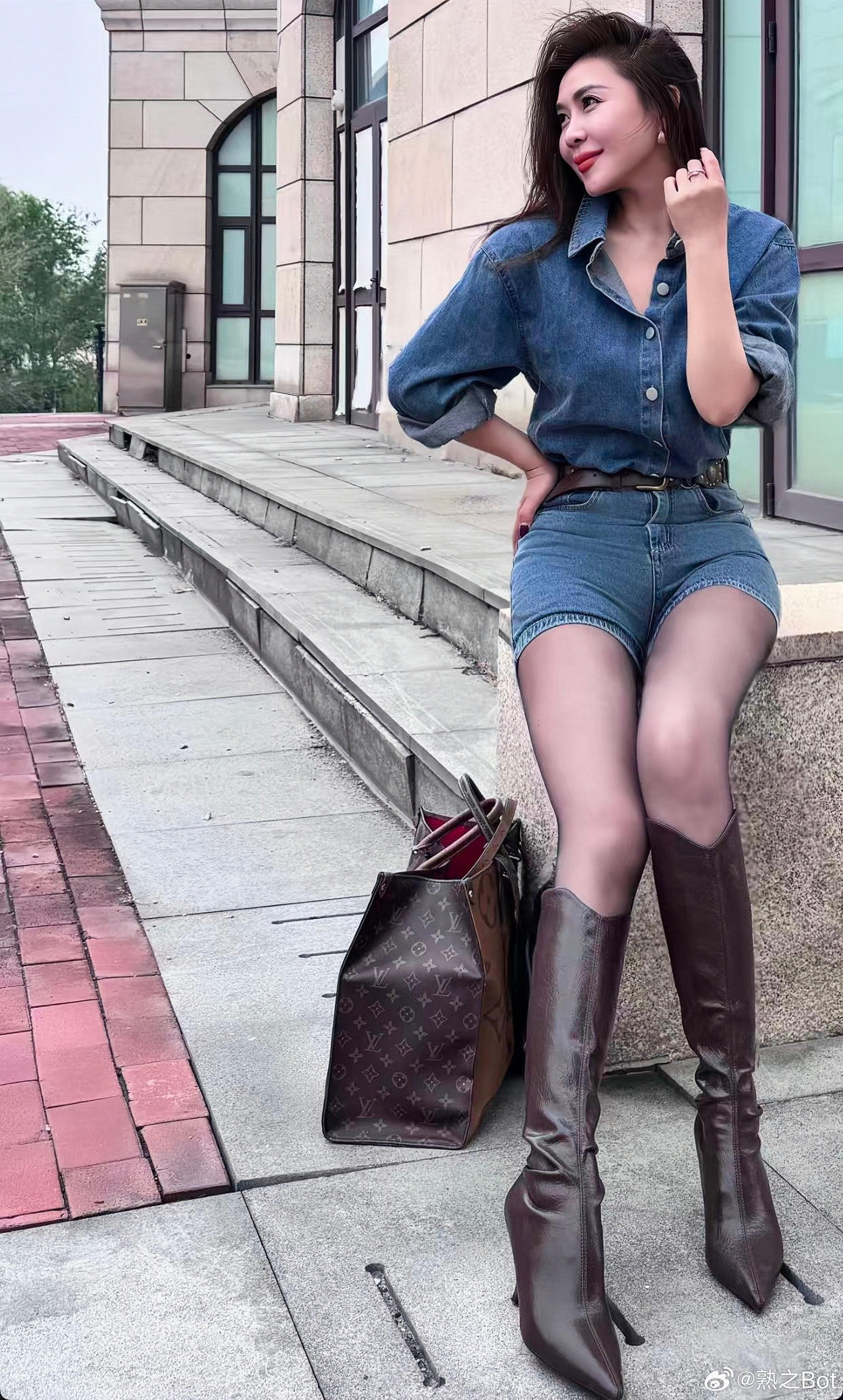 干干净净的,街拍牛仔裤女孩,比那些什么有纹身的看着舒服多了。