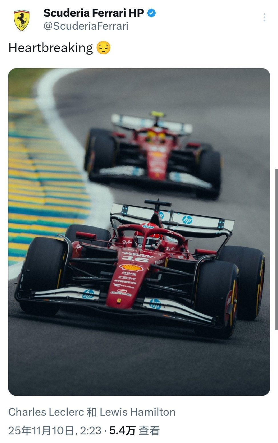 唉……[无聊]法拉利双车退赛F1赛车2025F1圣保罗大奖赛