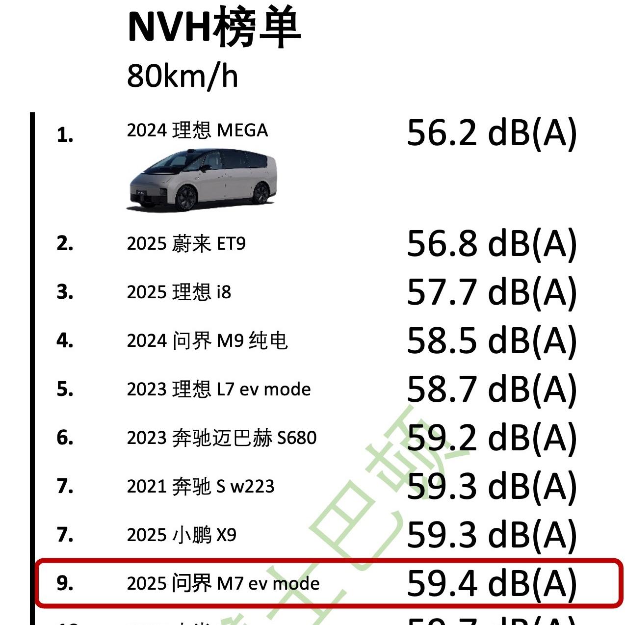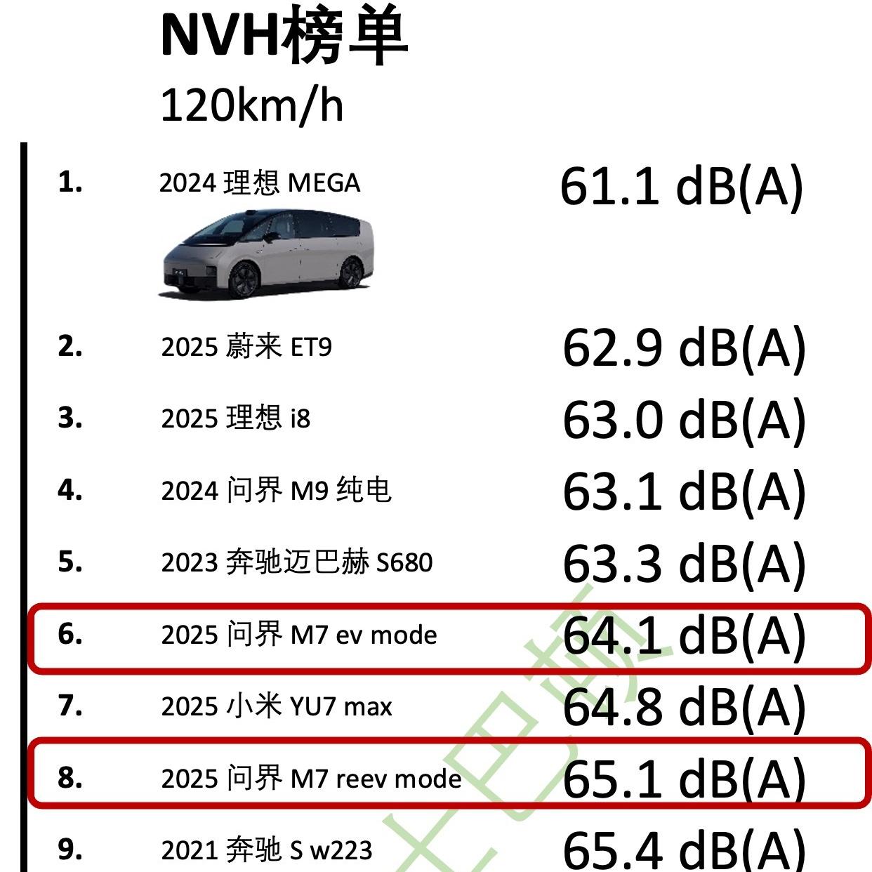 25款问界M7的NVH数据出来了,确实有点强悍! 40km/h,纯电版53.4(第7名),增程版54.1(第19名) 80km/h,纯电版59.4(第9名),增程版60(第12名) 120km/h,纯电版64.1(第6名),增程版65.1(第8名) 纯电版已经快赶上老大哥问界M9了,增程版表现也不错,比部分纯电车型还要好! 数据测试/完整榜单:郑博士巴顿