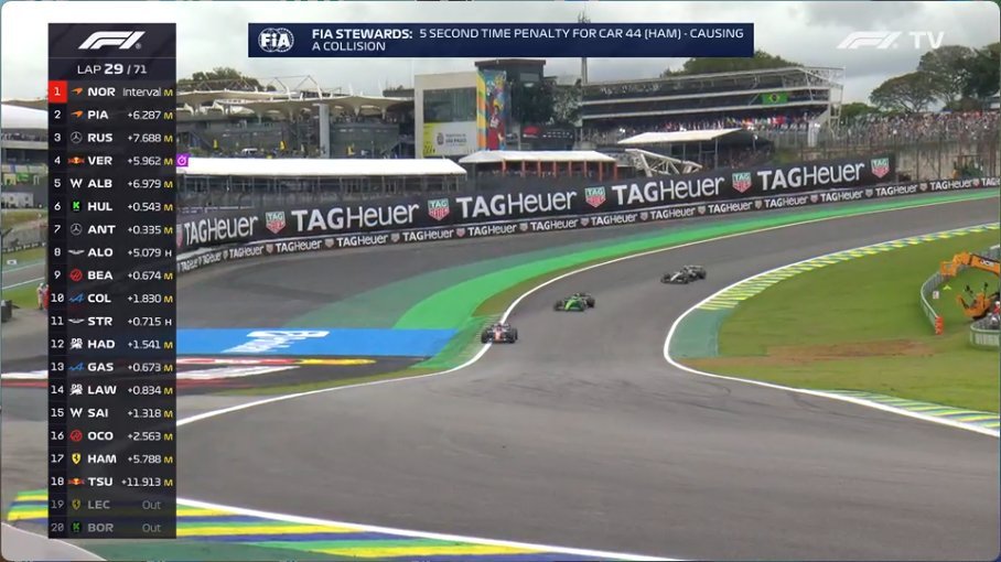 汉密尔顿因为和科拉平托的碰撞被罚5秒[二哈][淡淡的]