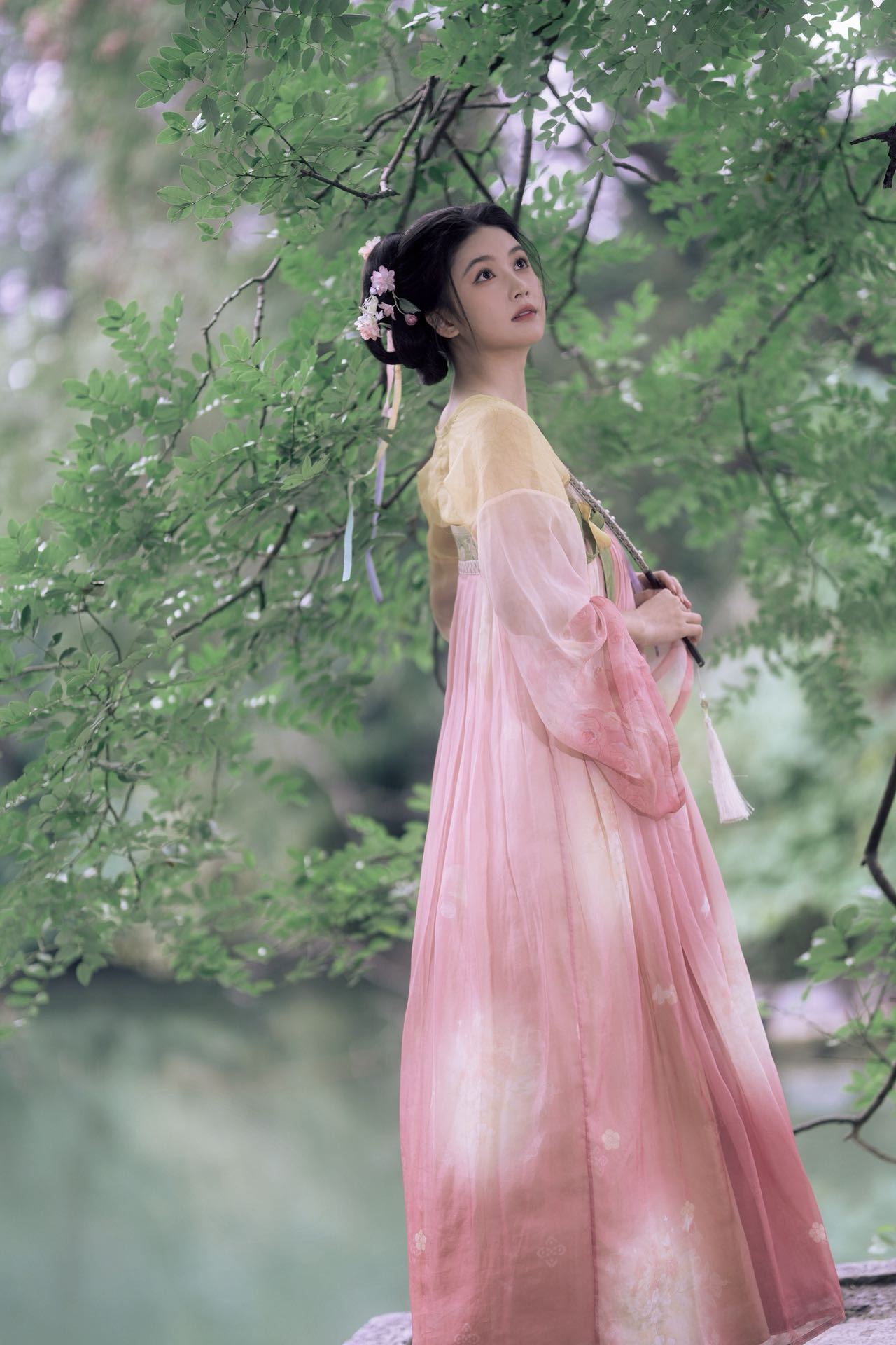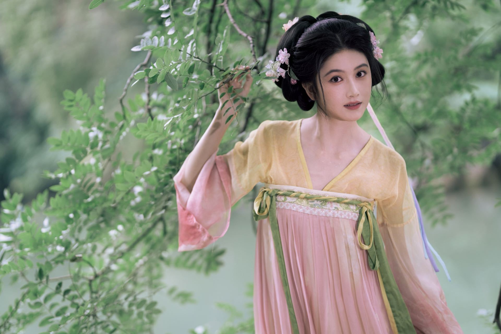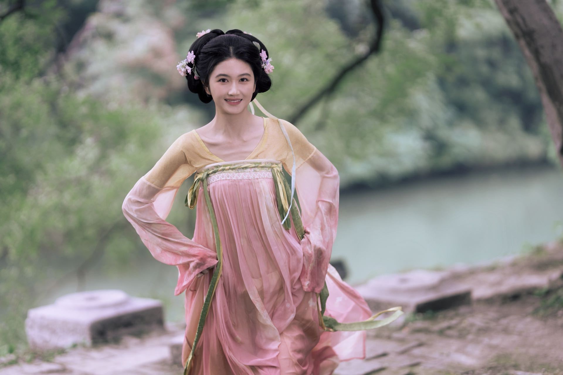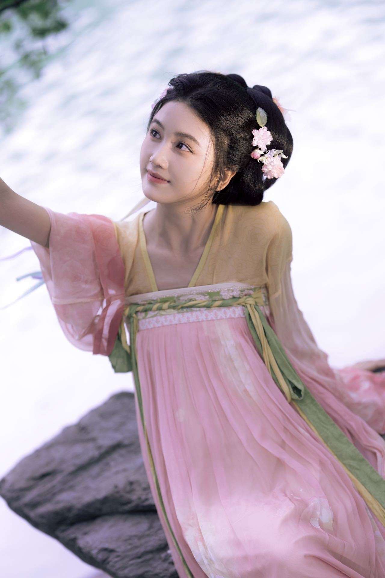 甜度超标预警!唐人小花林展如的唐制汉服图太绝了!粉粉嫩嫩的襦裙衬得她软嫩透亮,托腮歪头的小动作都甜进我心巴了!内娱上新一款古装甜妹