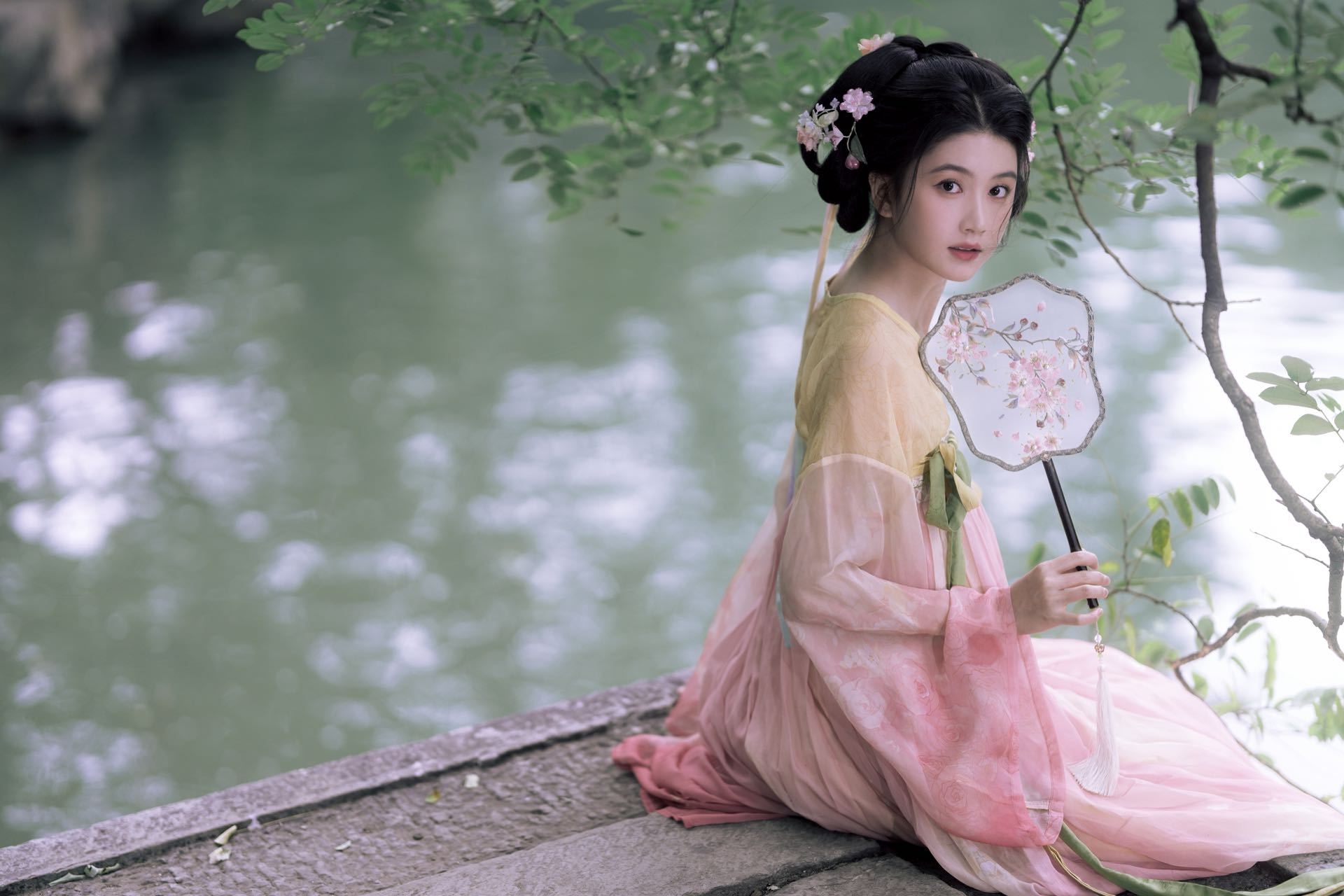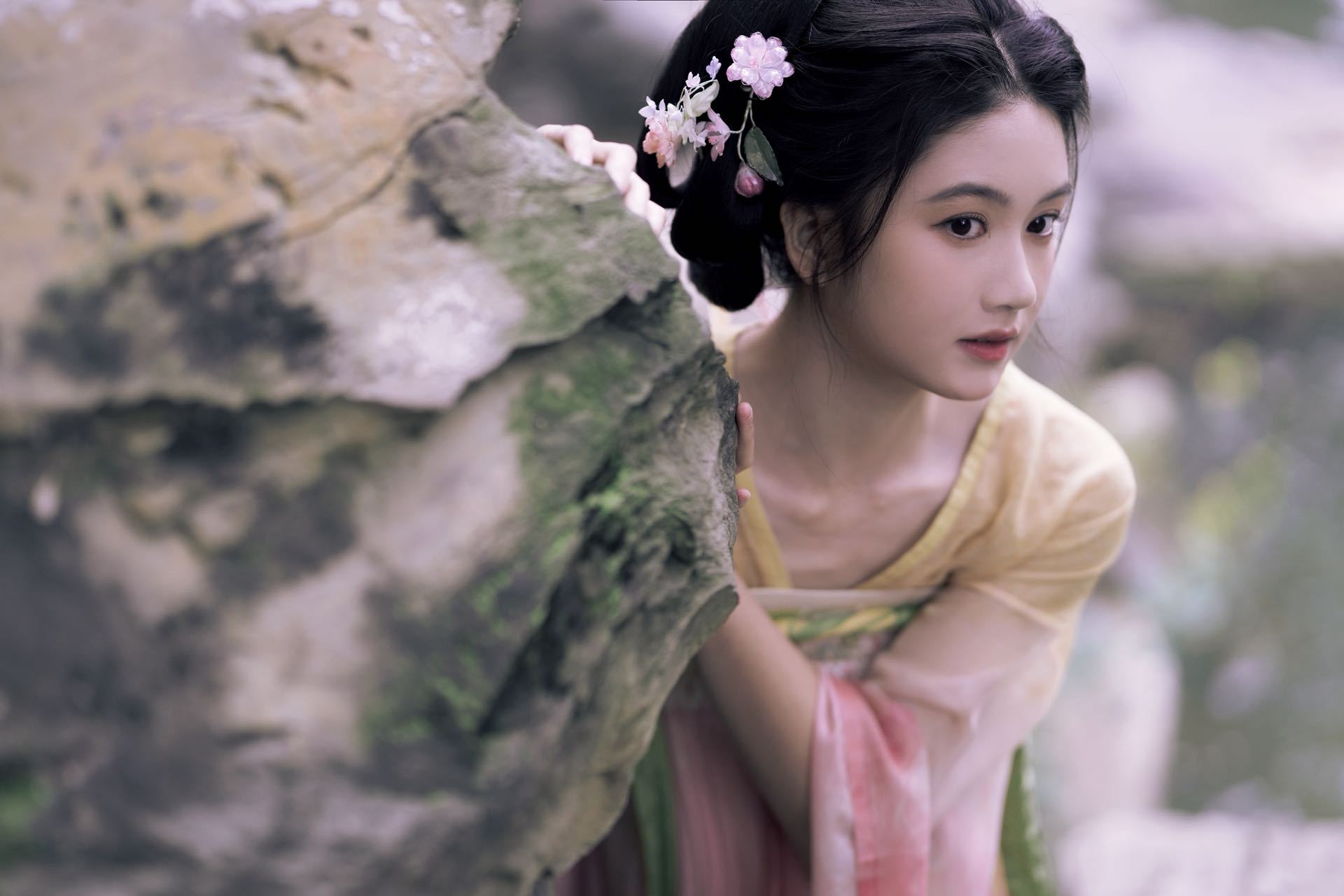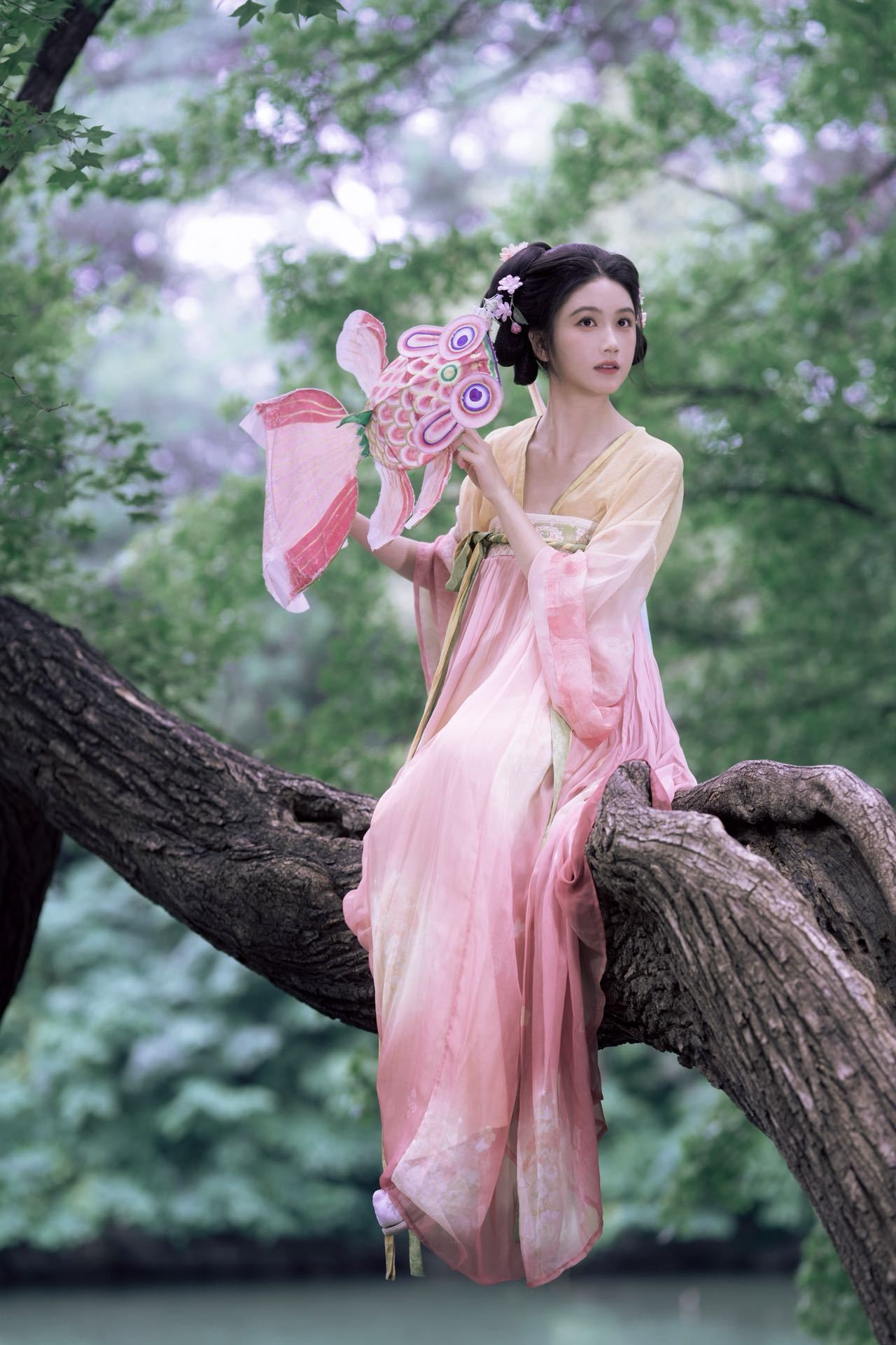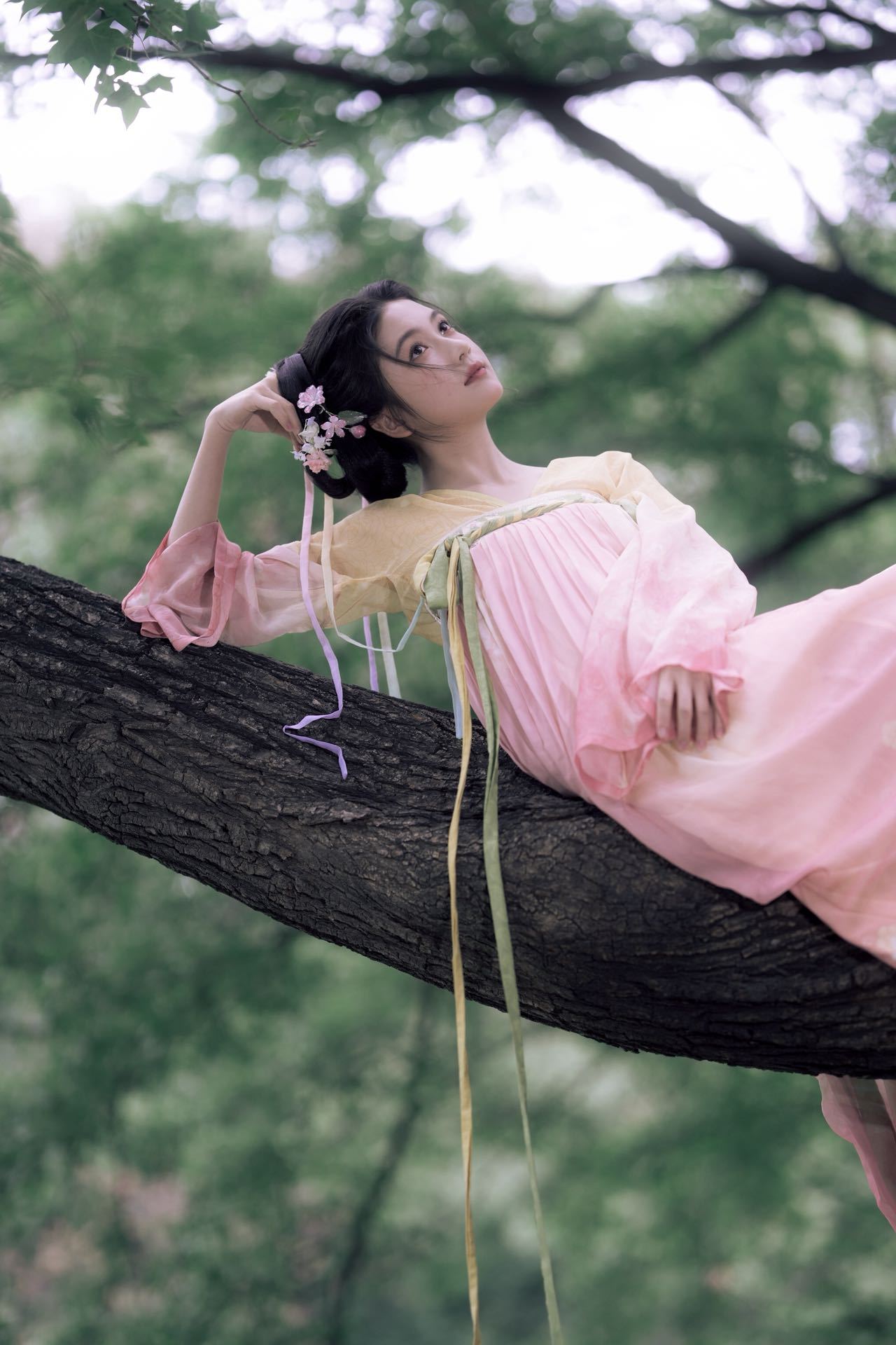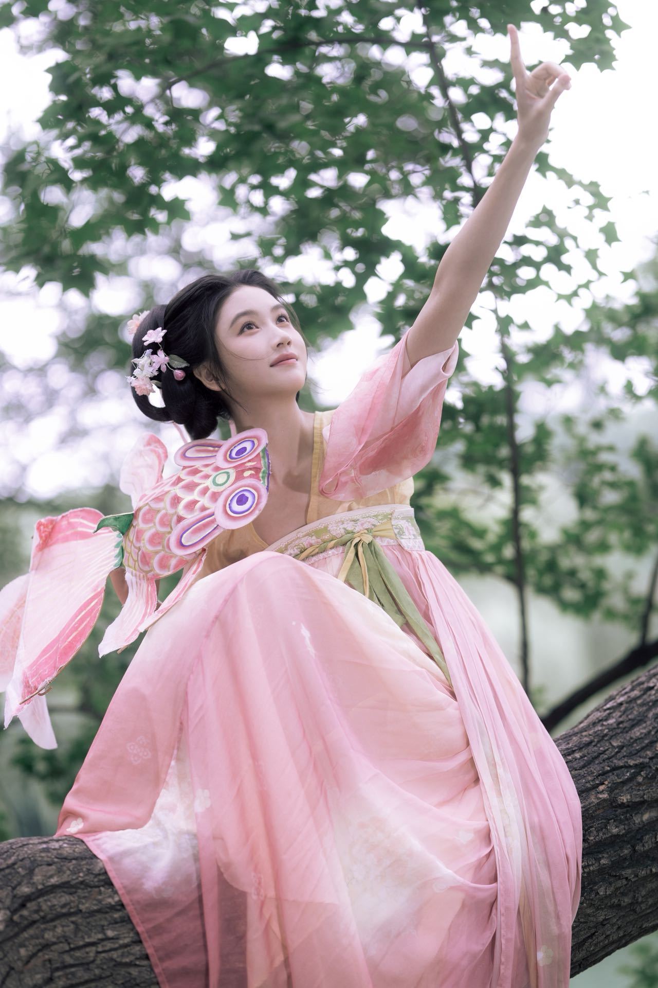 甜度超标预警!唐人小花林展如的唐制汉服图太绝了!粉粉嫩嫩的襦裙衬得她软嫩透亮,托腮歪头的小动作都甜进我心巴了!内娱上新一款古装甜妹