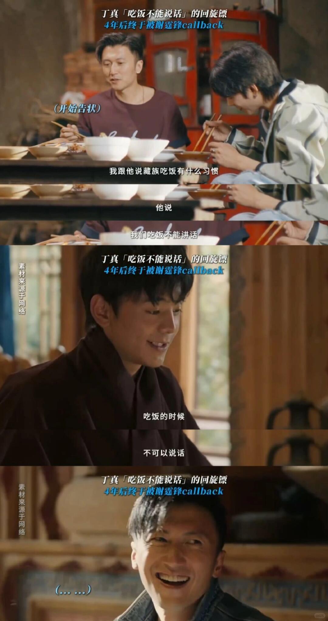 丁真刚对着甘孜美食喊出“哇太好吃了”,谢霆锋立马补刀:“你以前不是说吃饭时不讲
