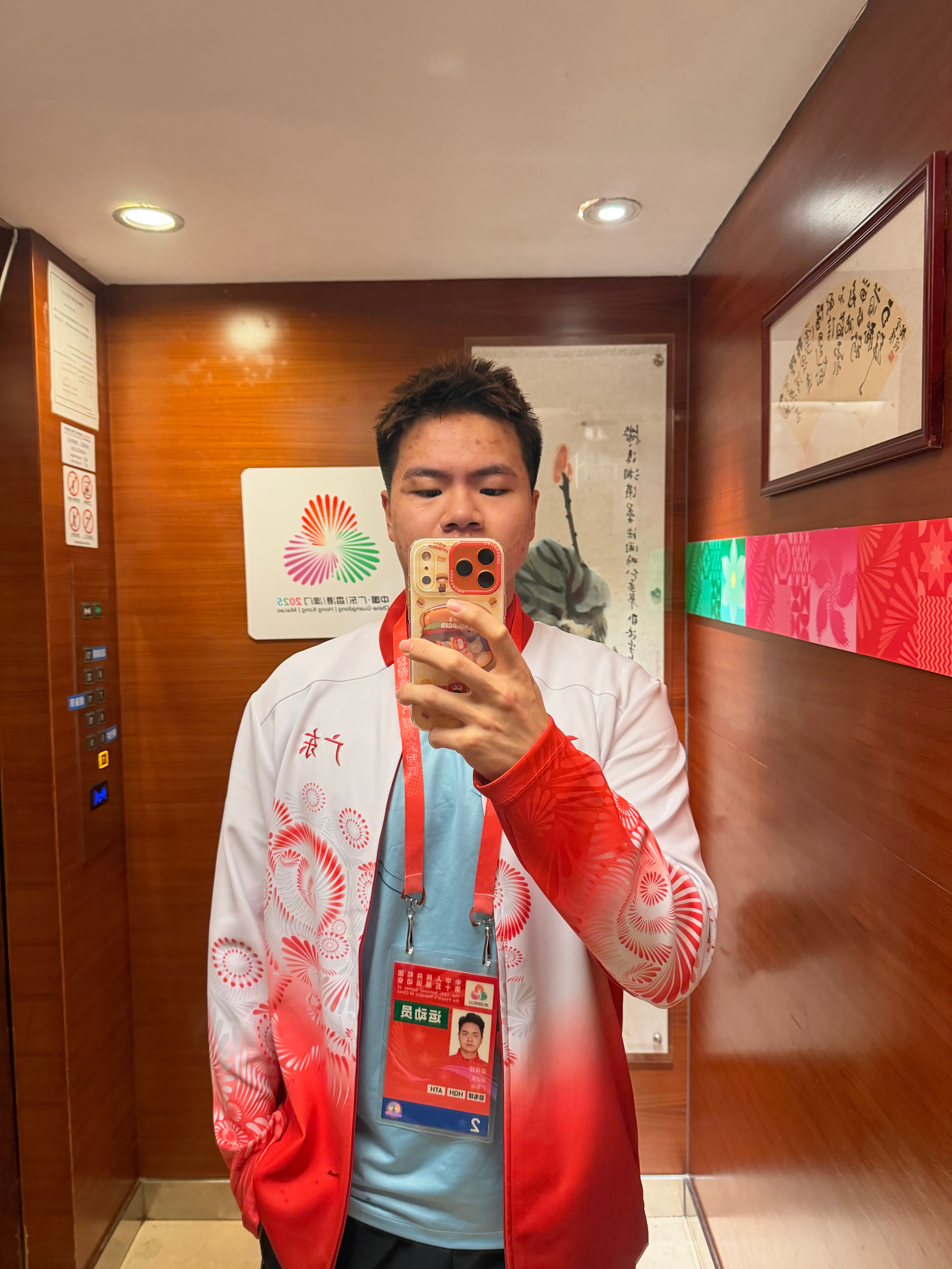 这是我第一次当火炬手,能够在家门口举行的十五运会上参与火炬传递,还是在开幕式现场