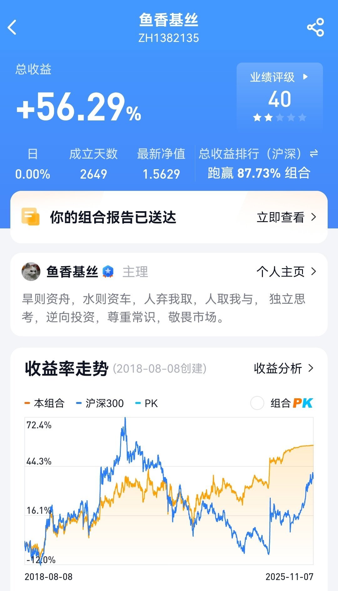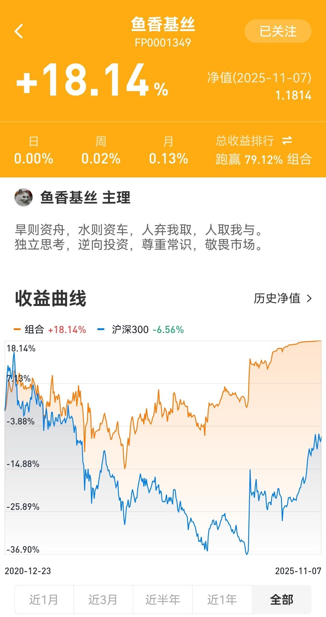 2025年11月7日鱼香基丝指数基金投资组合实盘周报。