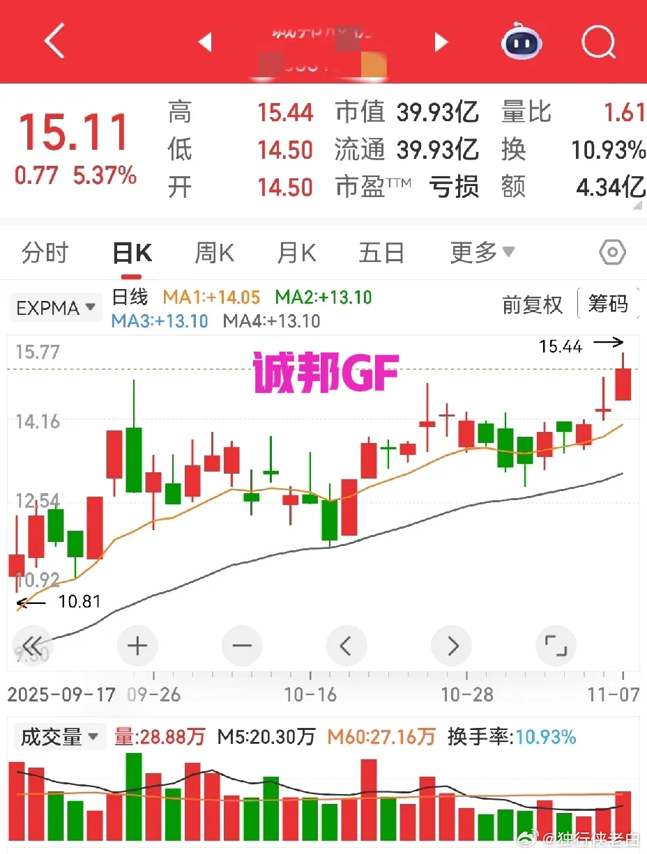 诚邦GF,9月24日以来,形成了上升三角形整理形态,周五有突破意味,是否回踩尚待观察。