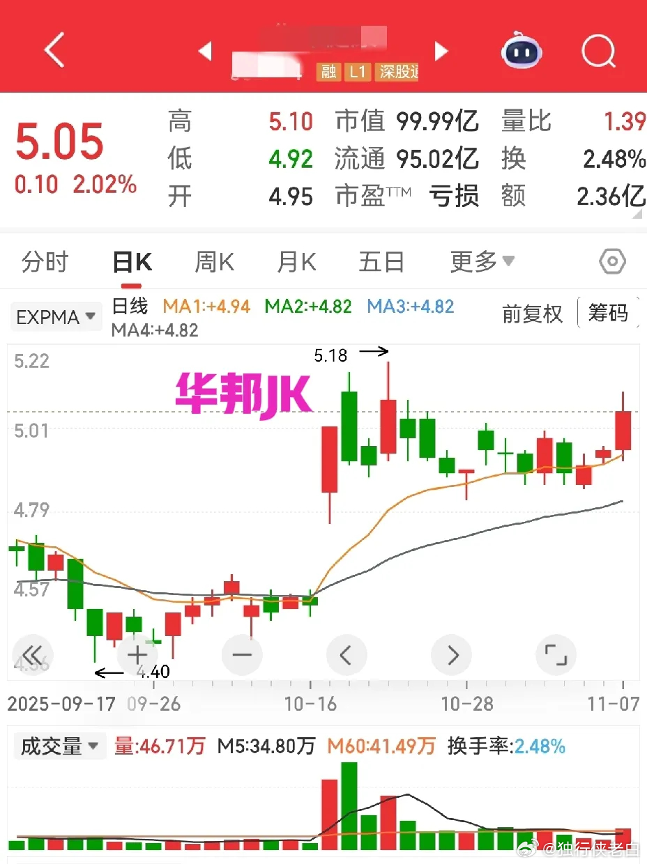 华邦JK,10月17日跳空高开涨停板后,横盘震荡15天,一直没跌破17日的开盘位置,并沿生命线紧贴着走了八天,目前略有抬头。