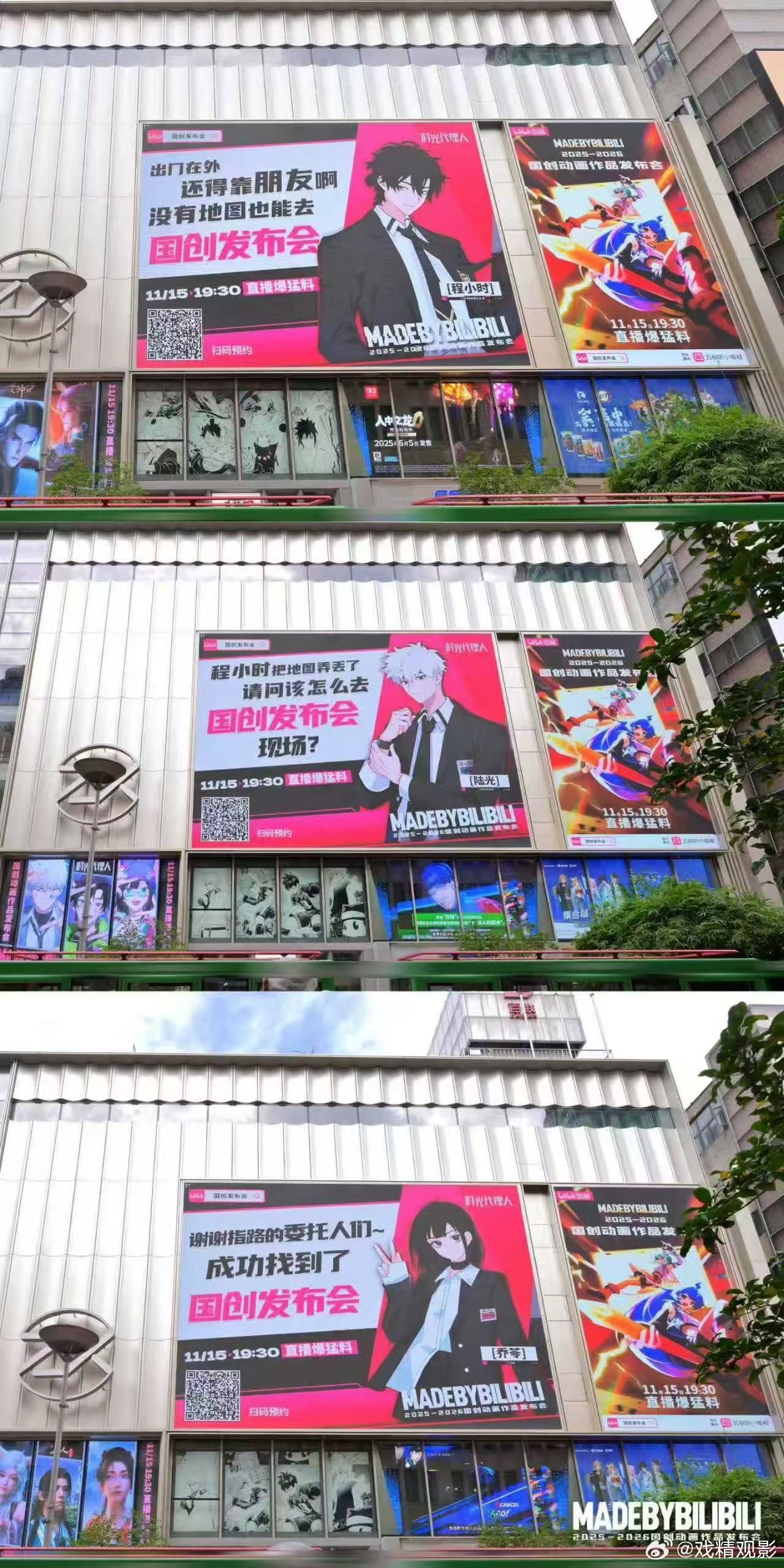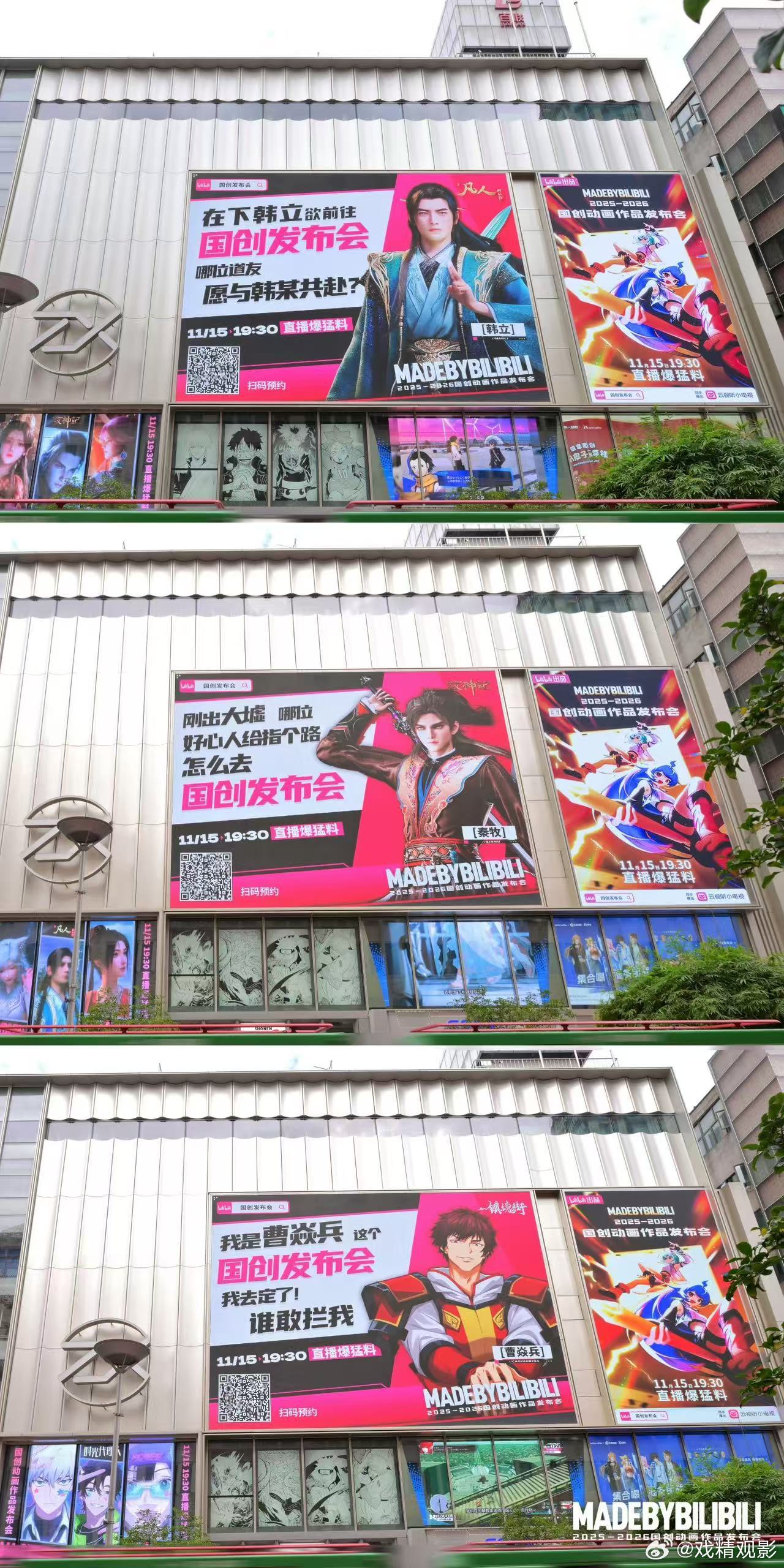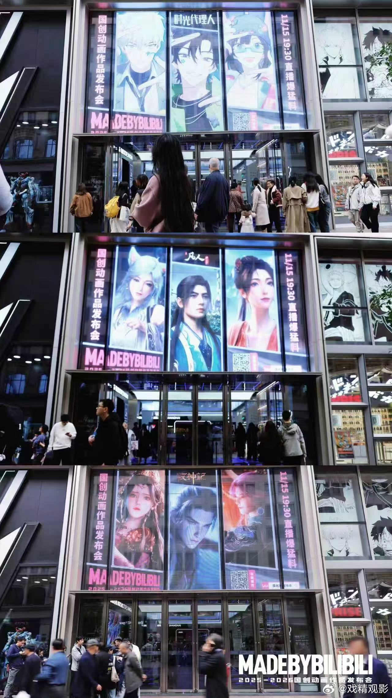 国创动画承包一座上海痛楼 上海街头惊现国创动画痛楼,韩立等角色齐聚大屏,气势拉满,不仅有等身透卡屏风,还有人生四格打卡点,线下活动诚意满满,路过的人都忍不住驻足拍照。