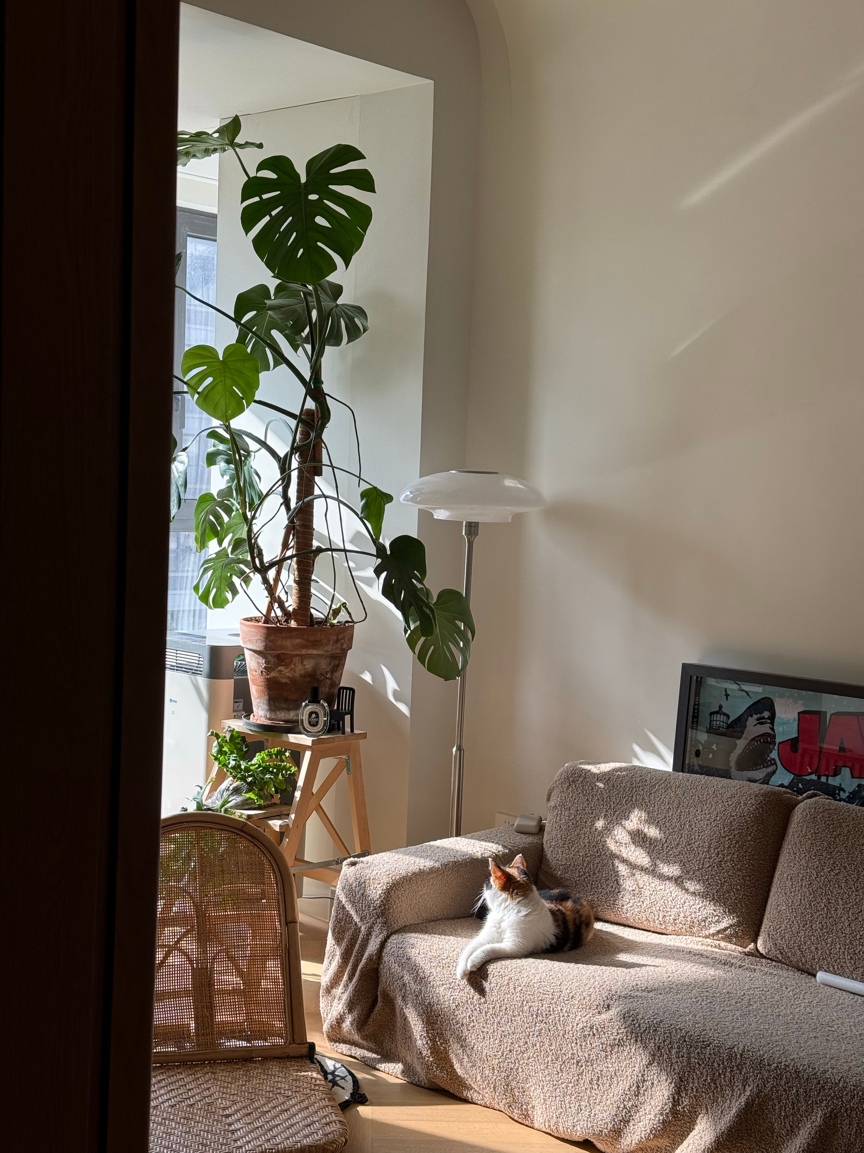 这部分家具都是从老房搬过来的,猫猫很熟悉,也快速的找到了它原本就爱睡的位置。