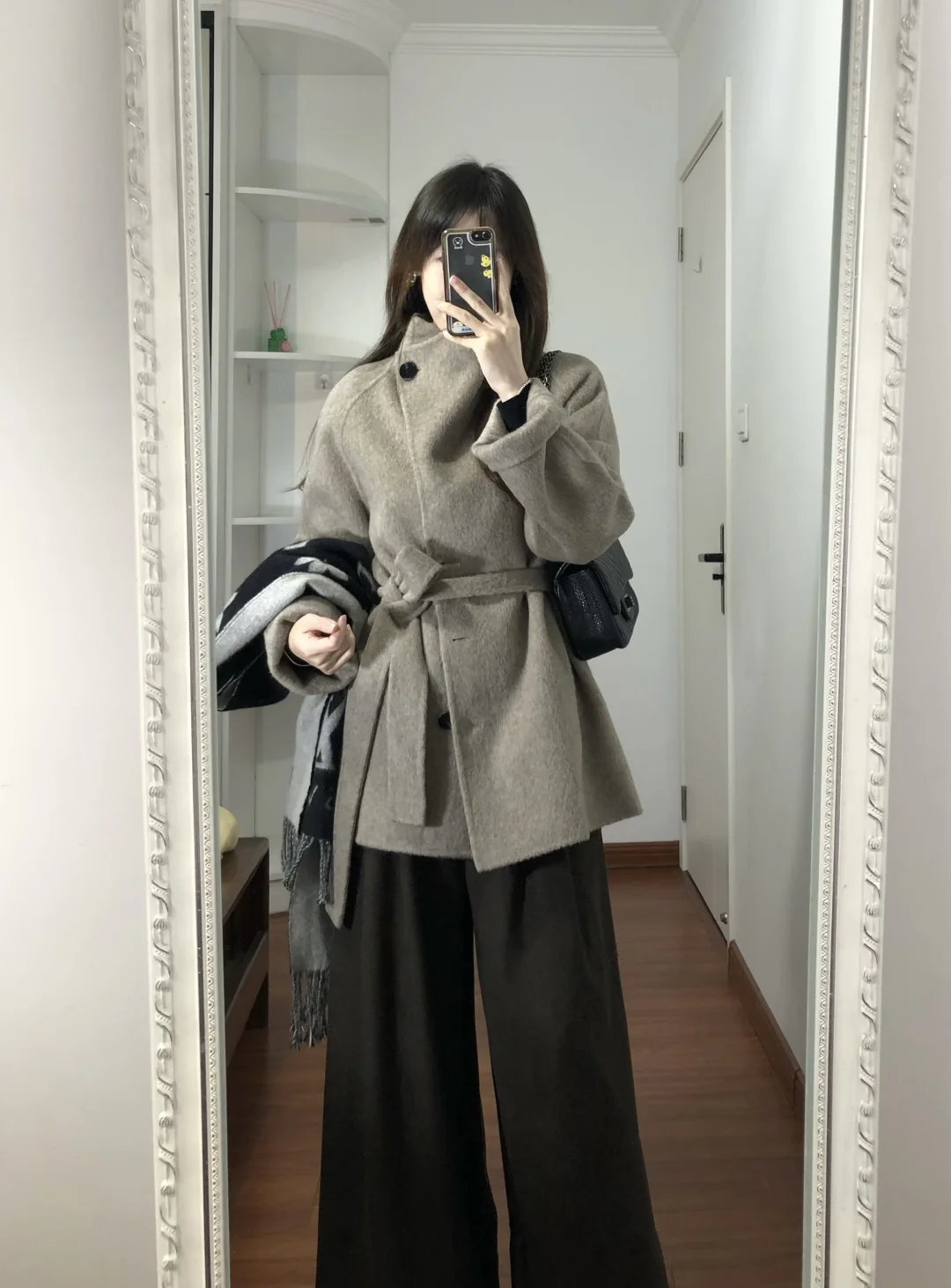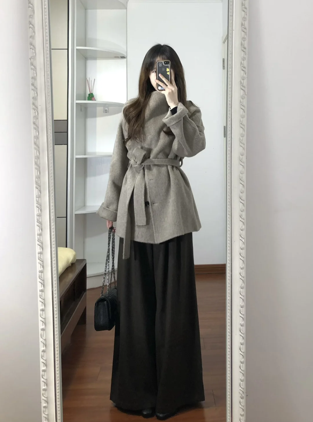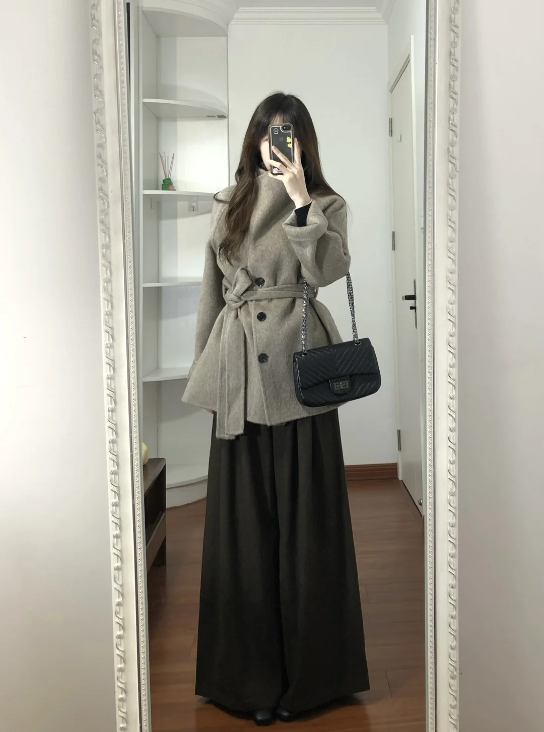 冬季大衣,大多版型宽松,款式较长,如果再选择款式偏宽松的西装裤或阔腿裤搭配,很容