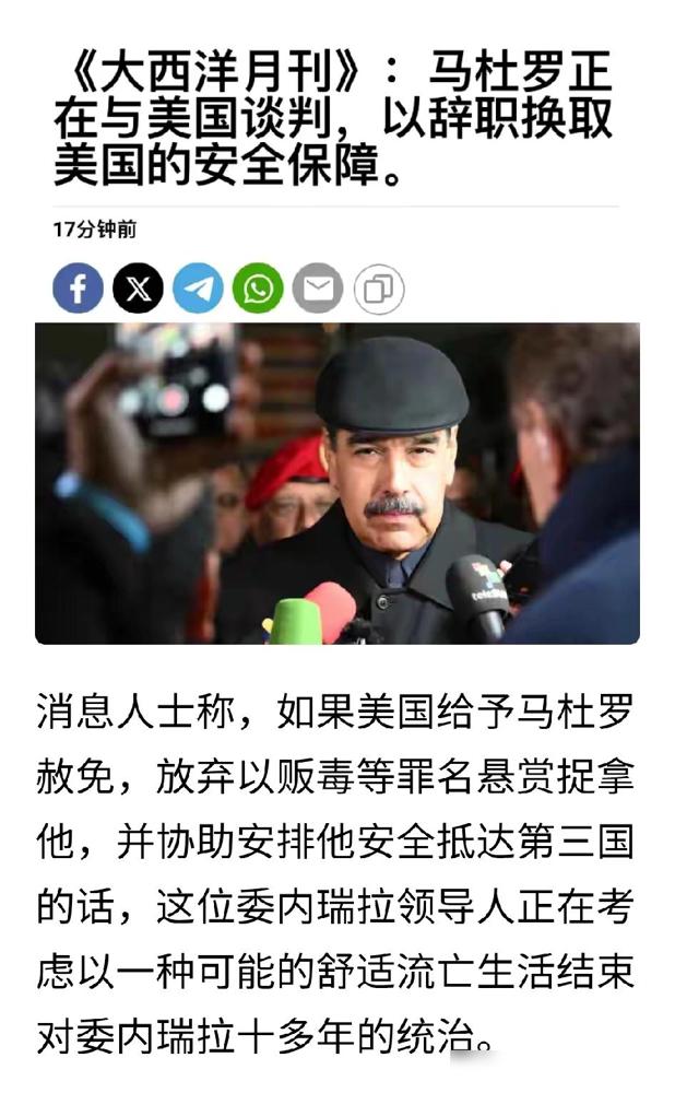 完了完了完了!当地时间4日《纽约时报》称,特朗普正在考虑采取秘密军事手段,对包括马杜罗在内的委内瑞拉政府官员,实施抓捕或“斩首”行动,并可能出动海豹突击队等特战力量,控制加拉加斯大型机场,以推动该国权力更迭。一名白宫消息人士还说,美军正加强特立尼达和多巴哥的空军战机部署,可能从委东部海岸发起大规模军事打击。 这是要玩真的吗?咱普通老百姓看国际新闻,最见不得这种“军事冒险”。委内瑞拉这些年本就经济困难、政局动荡,美国要是真派特种部队搞“斩首”、炸机场,受苦的还不是普通民众?当年伊拉克的“斩首行动”最后咋样?萨达姆倒了,国家却乱了二十年,恐怖组织冒头、平民流离失所,这教训还不够深刻? 再说,特朗普这时候放出风声,是真想动手还是吓唬人?以前美国干预别国内政,常用“政权更迭”当借口,说白了不就是想控制人家的资源和地缘吗?委内瑞拉石油储量全球第一,美国盯着不是一天两天了。可军事手段从来不是解决问题的钥匙,只会让矛盾更激化。马杜罗政府再怎么说也是民选的,外部强行“换血”,只会让委内瑞拉更乱。 咱就盼着这事别成真。国与国之间的问题,靠对话协商总比枪炮管用。要是真打起来,受苦的永远是普通家庭,孩子上不了学,大人没饭吃,这哪是“推动权力更迭”?分明是往火里扔汽油。