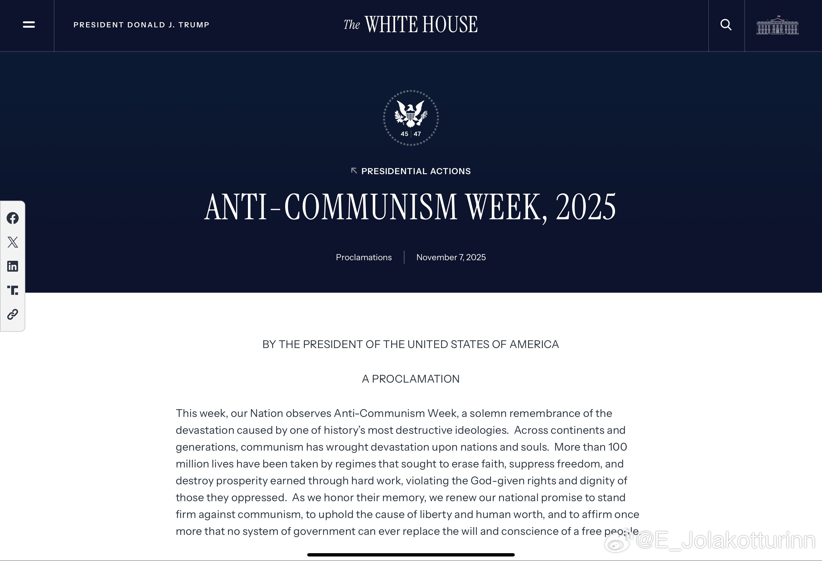 白宫在歇斯底里长篇大论地批判共产主义之后,搞了个美国官方的“反共周”[微笑]