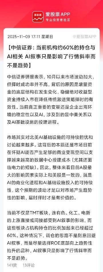 今天中信策略报告说,机构约60%的持仓与AI相关!
