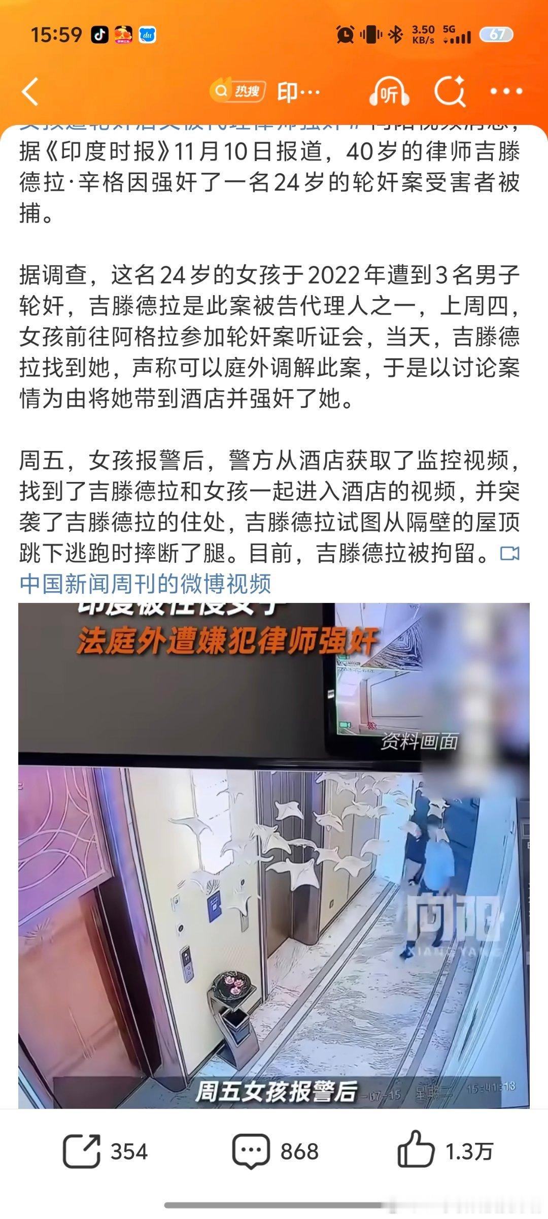 印度轮奸案受害女子遭代理律师强奸每次刷到印度的新闻,都一次又一次刷新我的三观。这真是一个神奇的国度,这受害者也太惨了,感觉它们的思想就没有跟上,为何会频频发生这样的事?可怕。